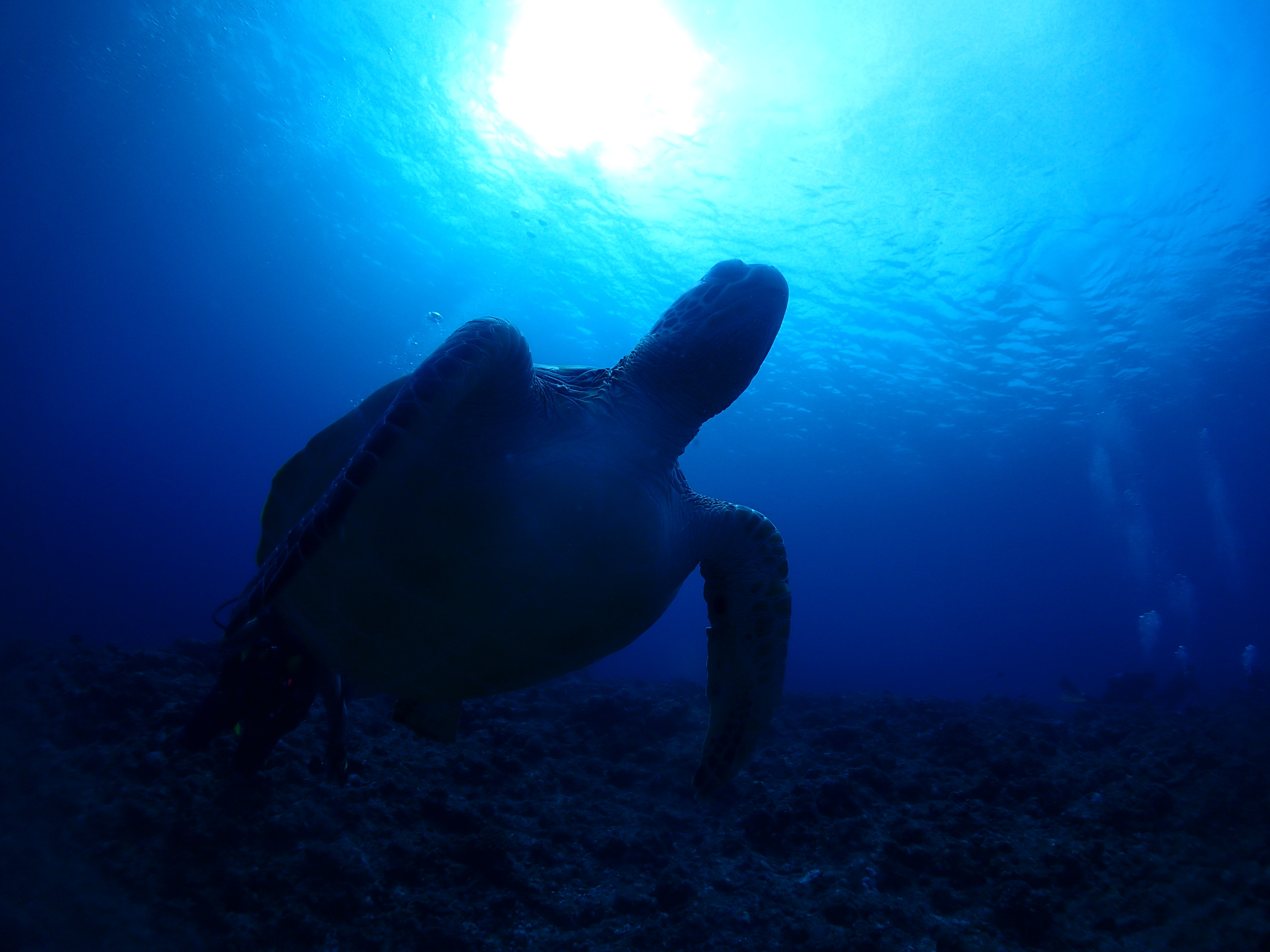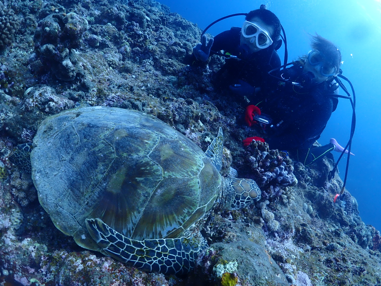 昨日も体験ダイビングをしていると言う事でしたので早速ウミガメ探索へ![]()