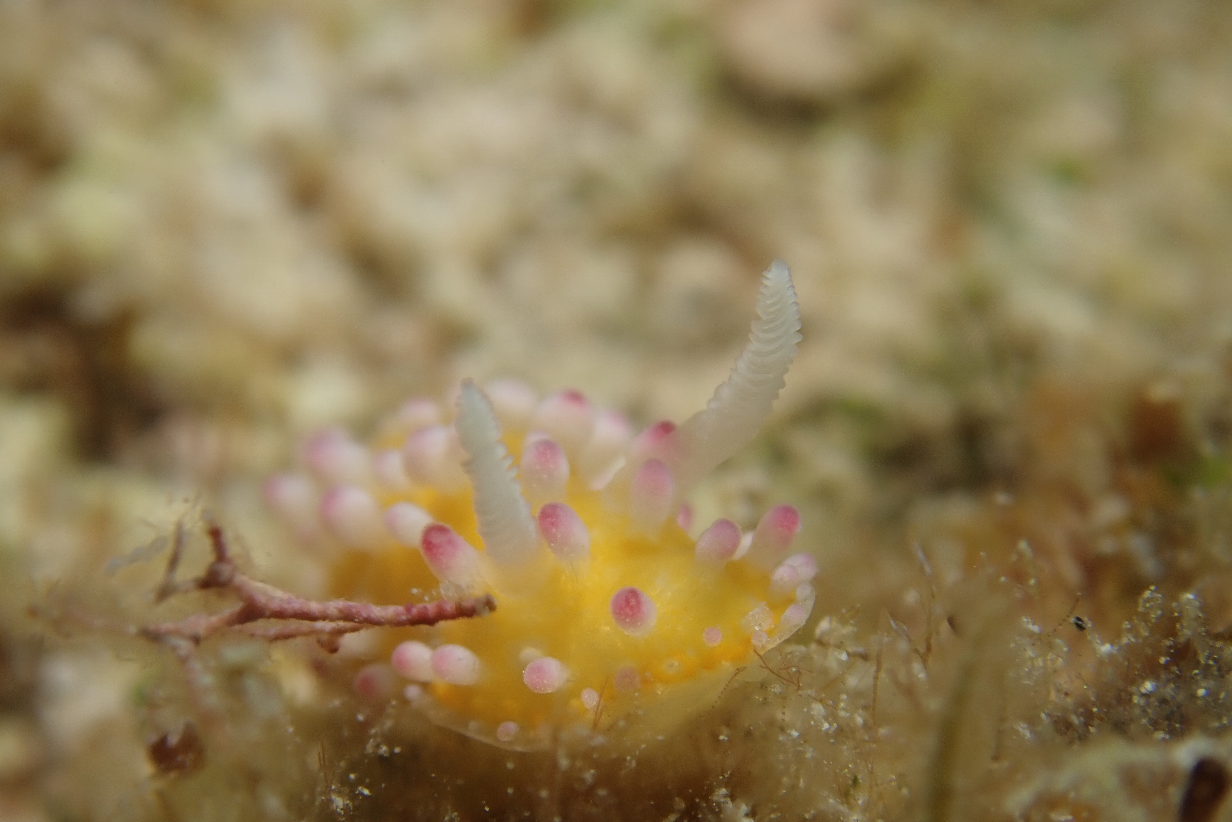 枝を背負ったイガグリウミウシ と ムラサキウミコチョウ