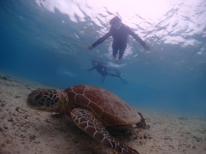 普段ダイビングをされない奥様がウミガメに会えるならと