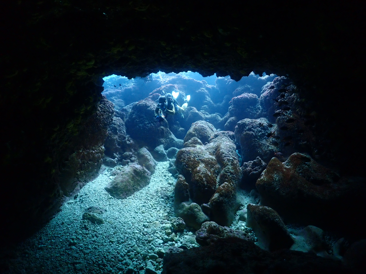 前回は、海況がいまひとつで浮上できなかったスネークホールも、今日は穏やかでしたね![]()