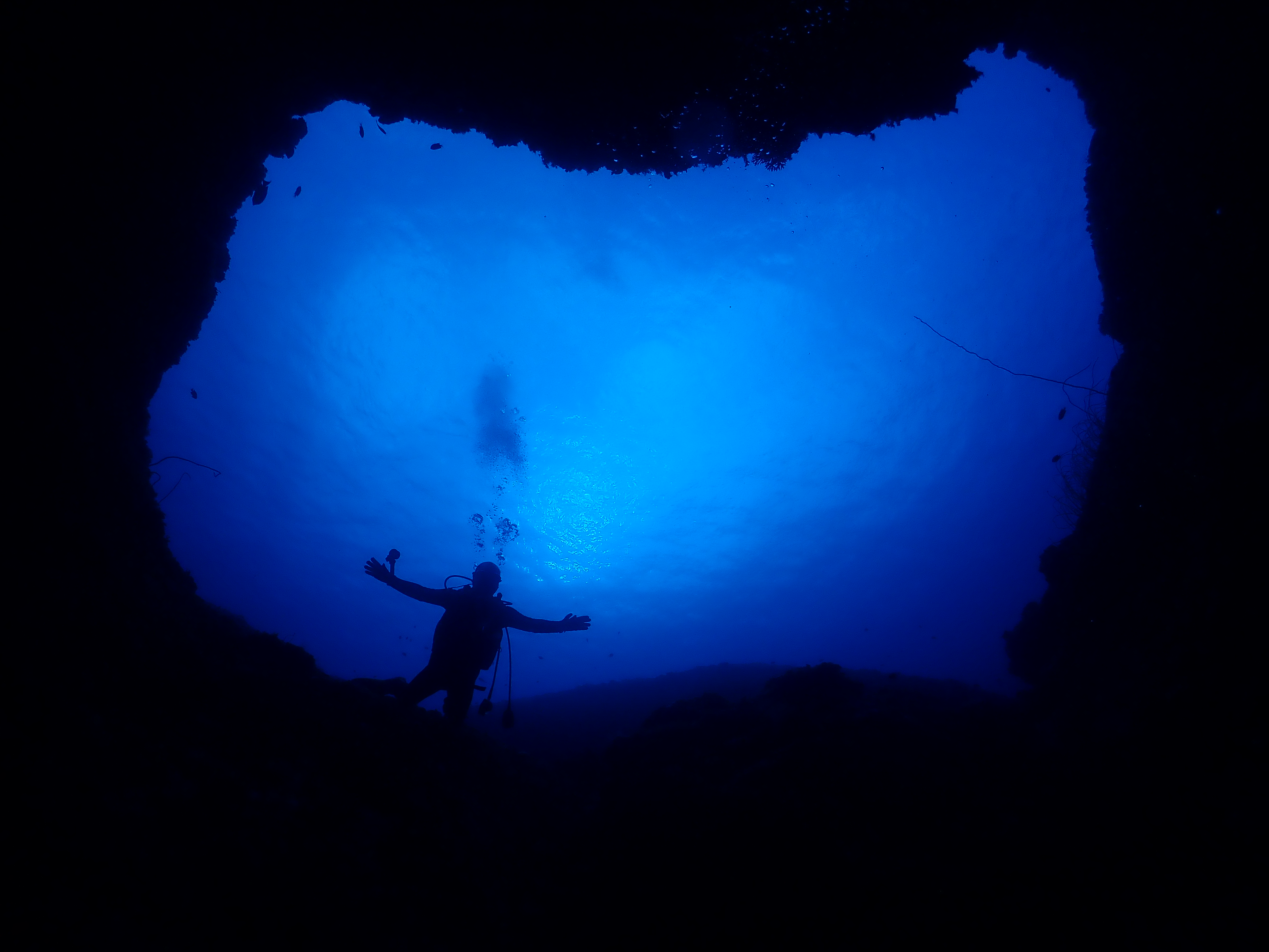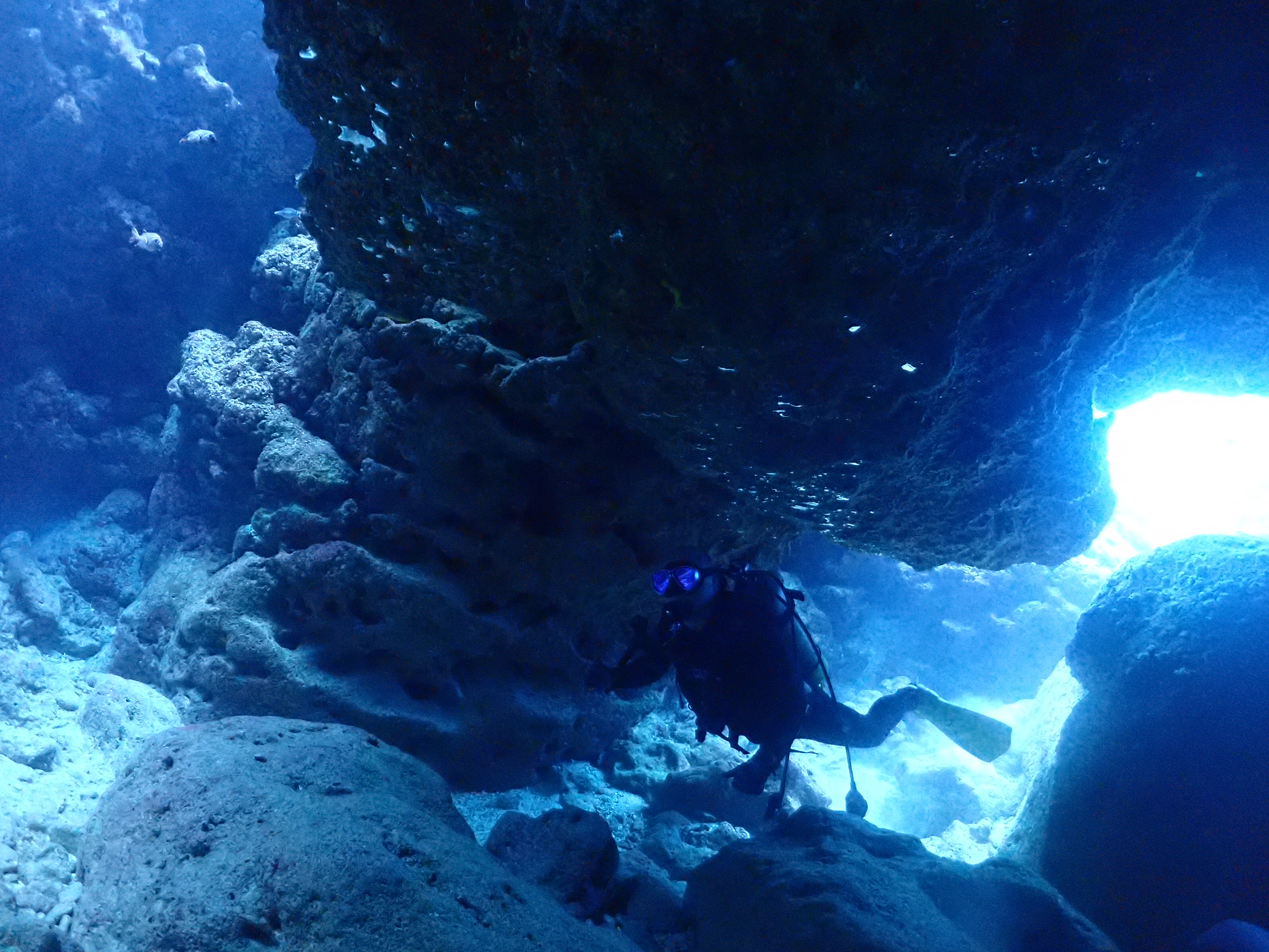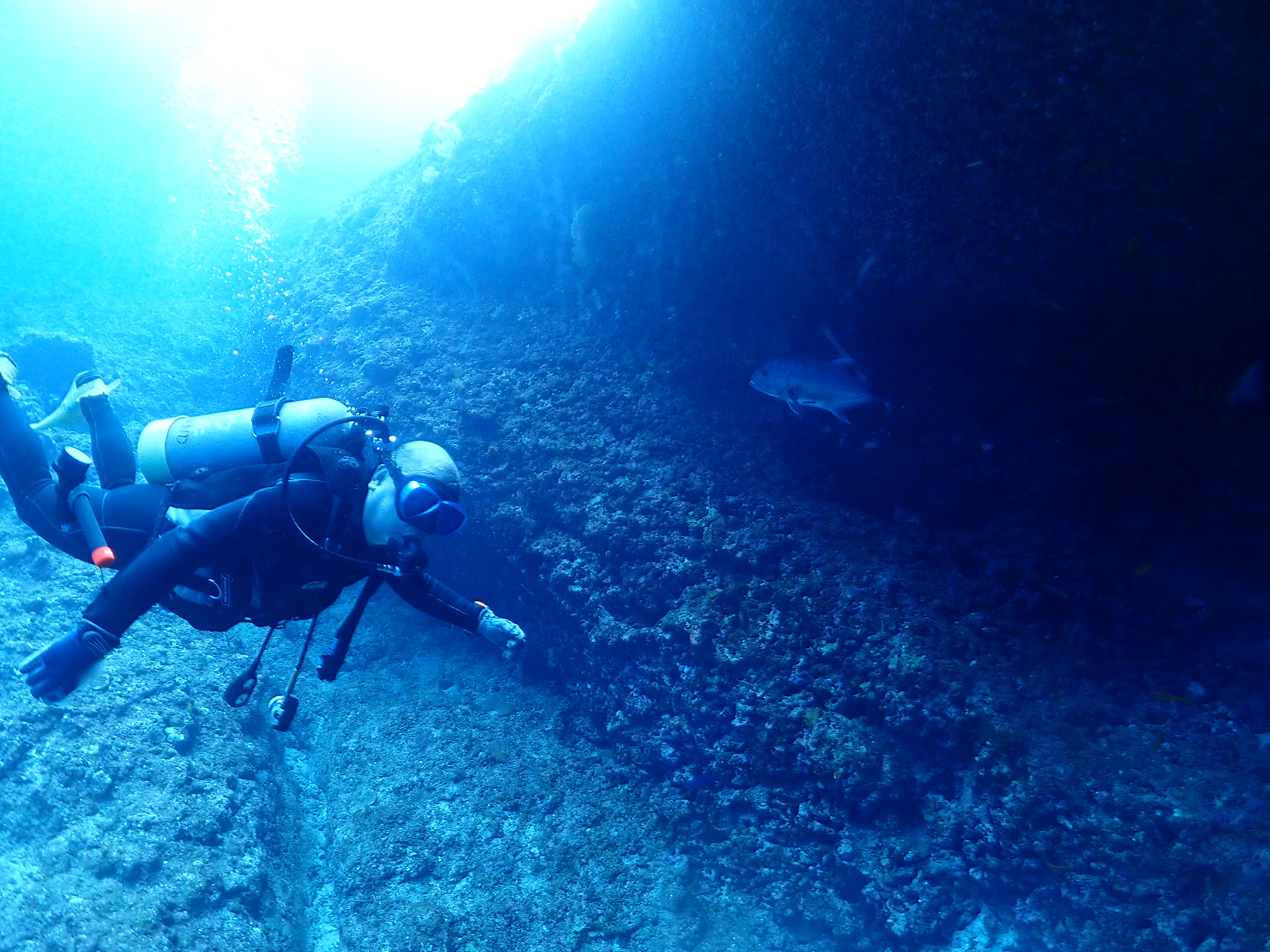 沢山のロウニンアジと一緒に 最後は浅場でゆっくりと洞窟探検へ
