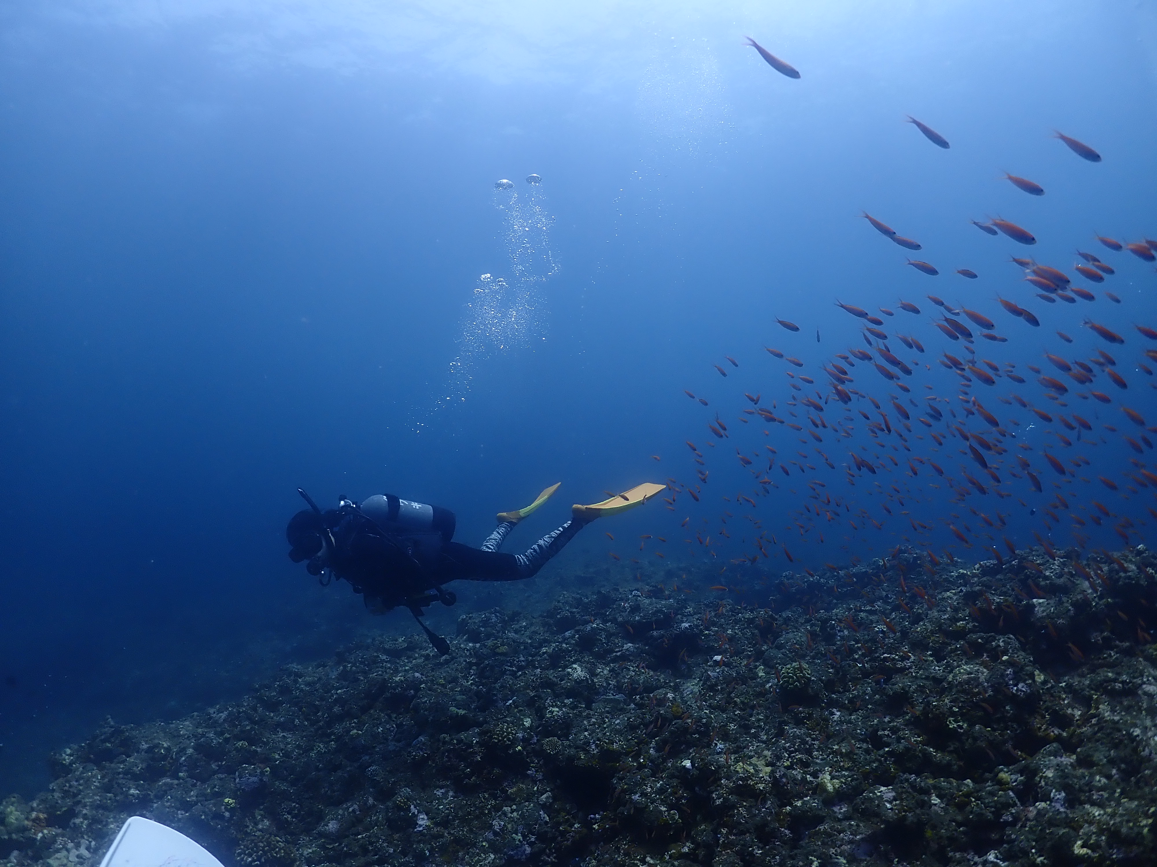 台風の影響がまだまだある様で濁りやうねりが有って水中も水面も大変ですね