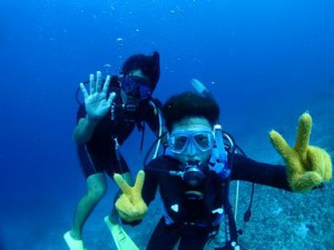 何時もヘルプで来てくれているスタッフの後輩が来島体験ダイビングにチャレンジ![]()