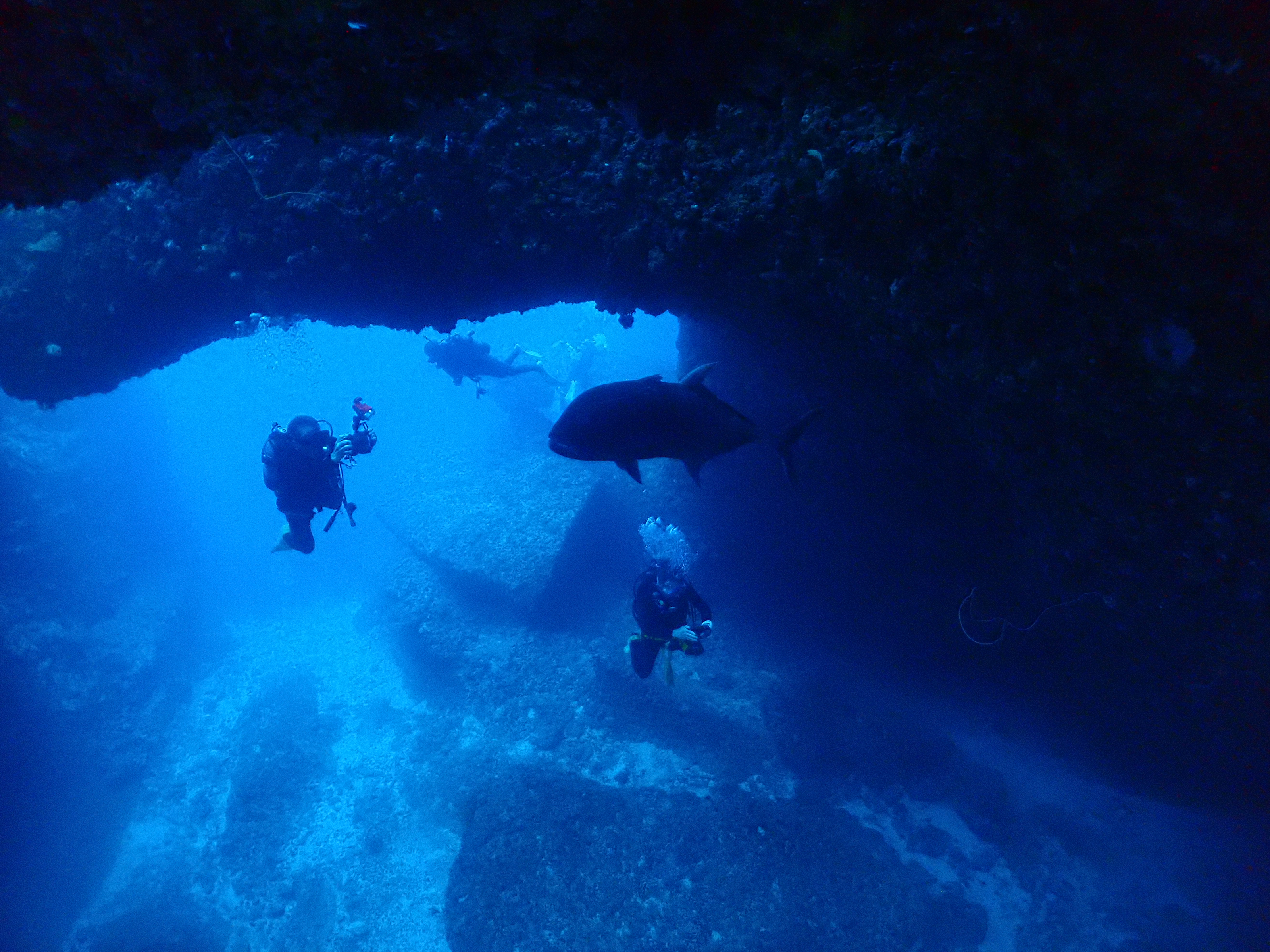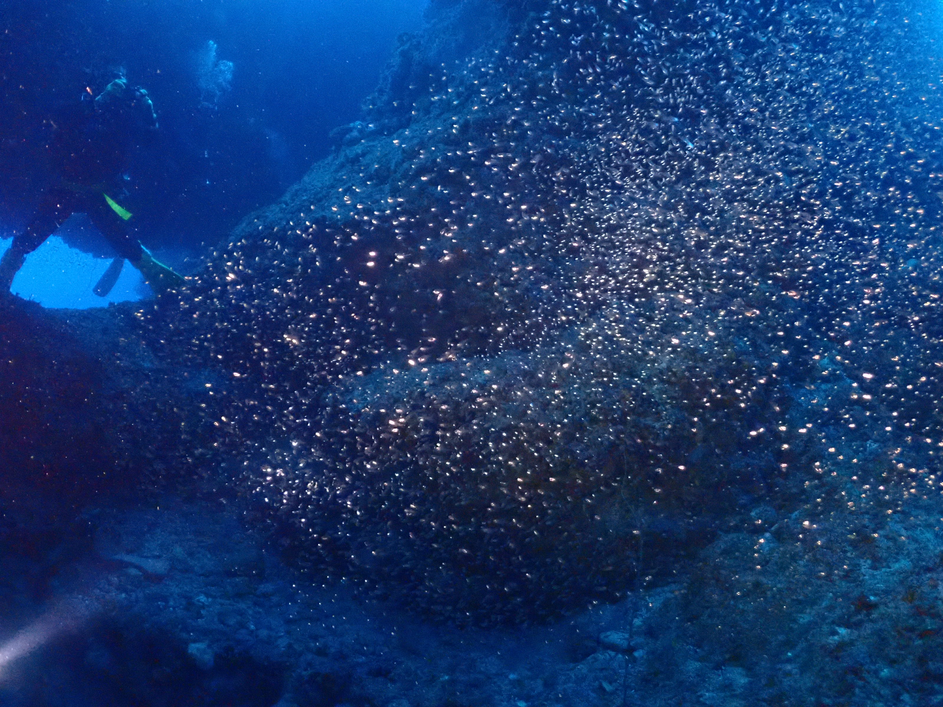 洞窟内を埋め尽くす(まだですが)量のスカシテンジクダイが集まってきました楽しみですね
