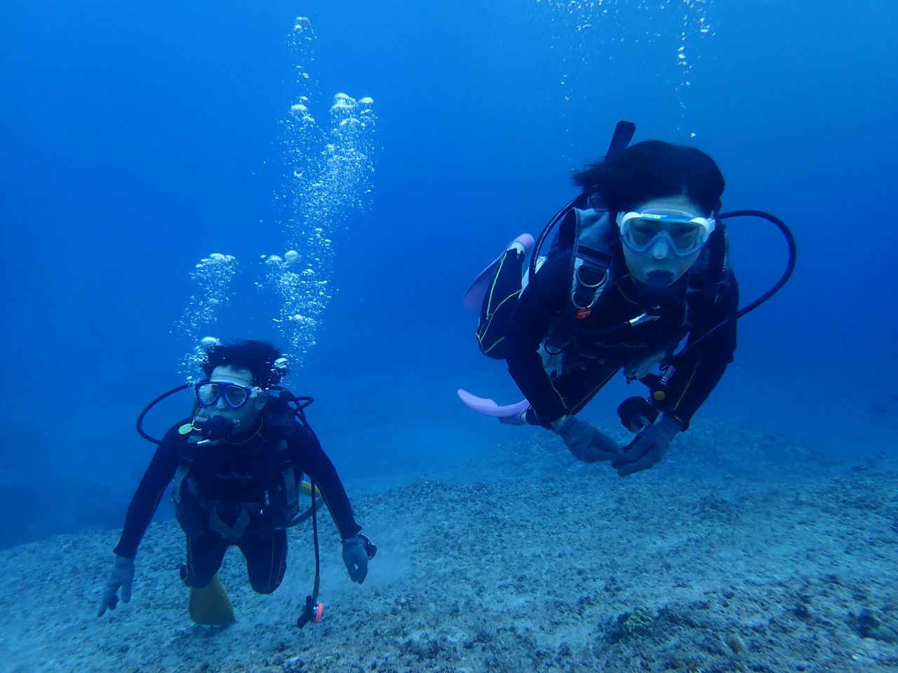 1本目でスキルの復習をたっぷりやりましたので、2本目はダイビングの練習です![]()