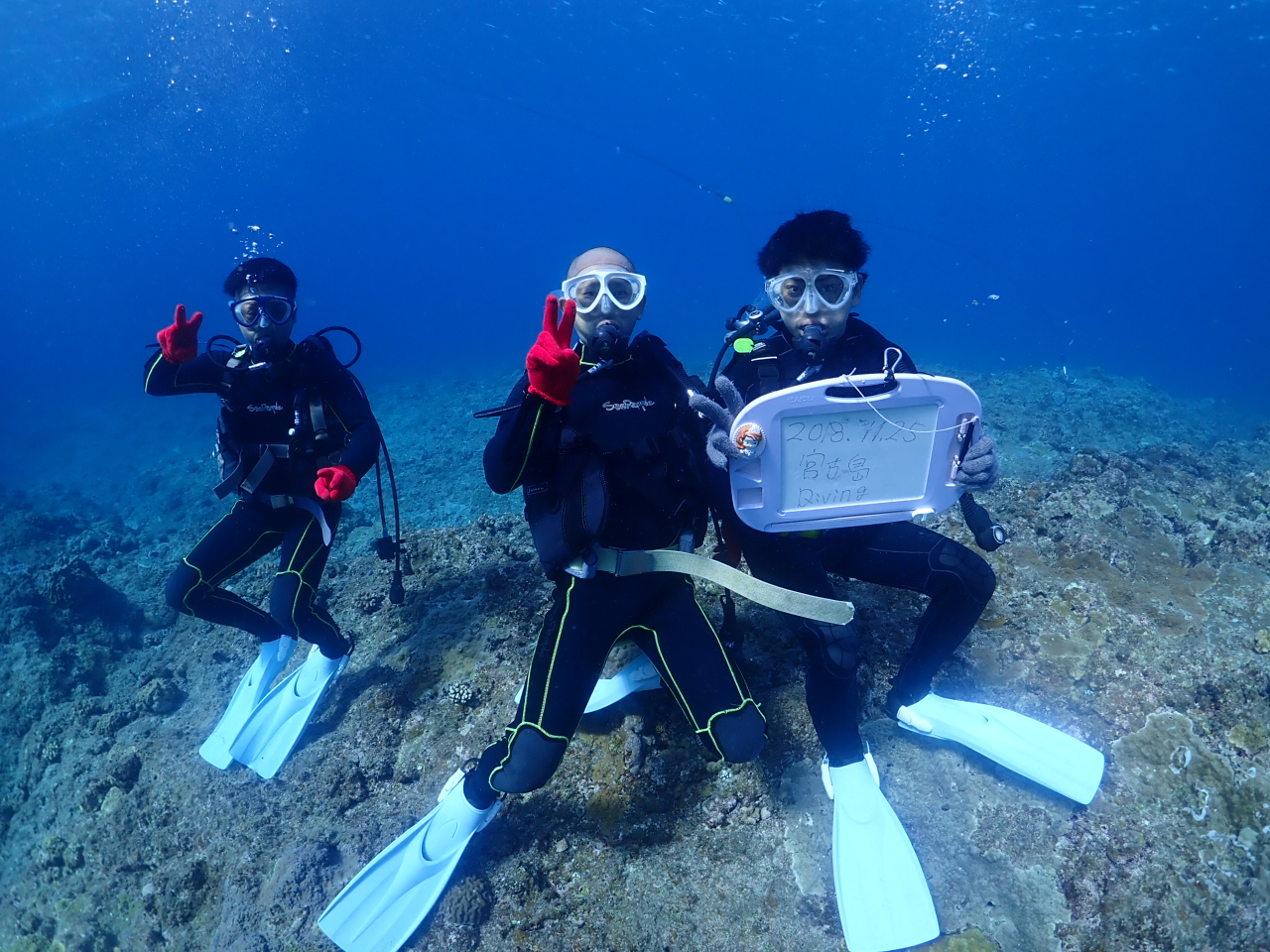 体験チームは初ダイビングに挑戦の皆様、元気いっぱい下地島方面へご案内です![]()