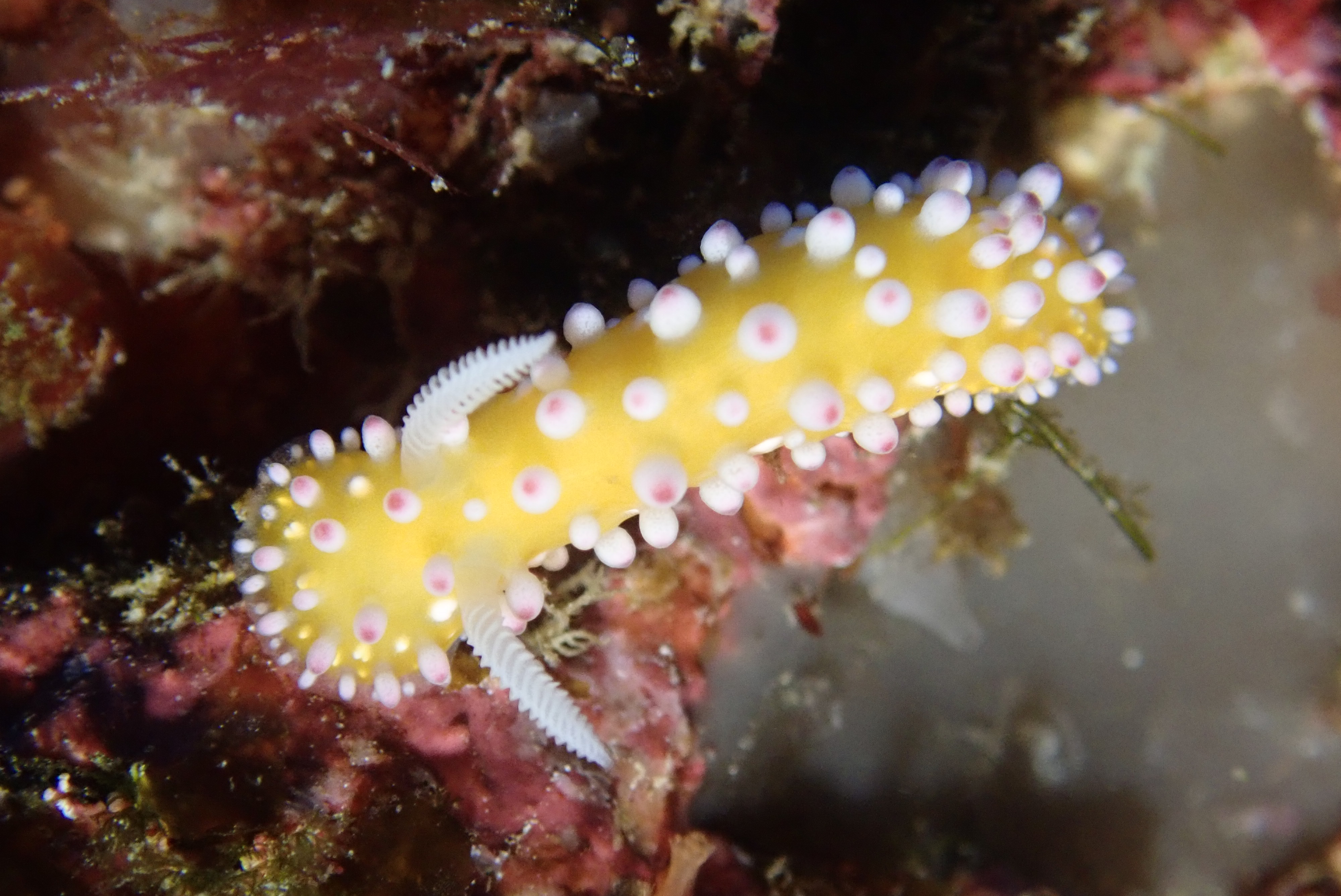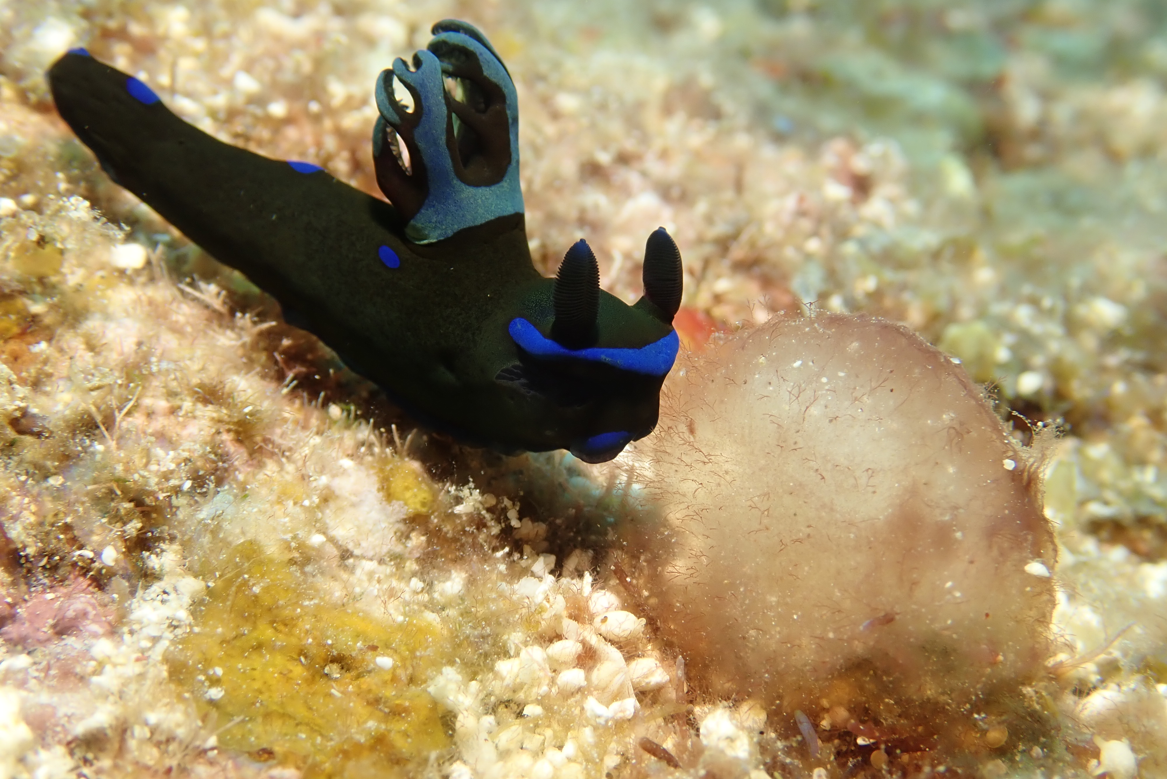スカシキヌハダウミウシかな?? と 食事しているみたいなミドリリュウグウウミウシ