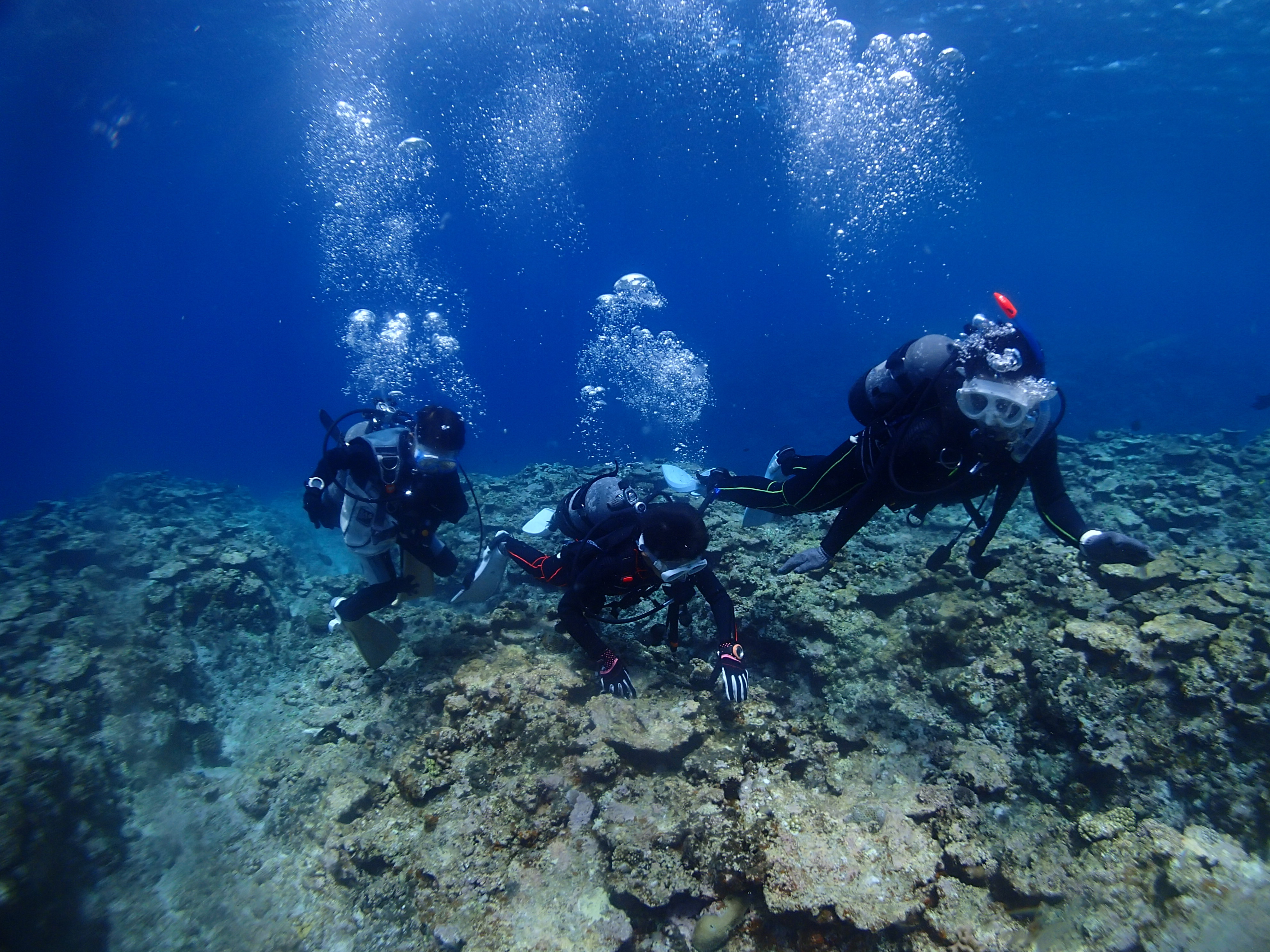 3本目からはファンダイビング、3人揃って青の洞窟探検へ行きました![]()