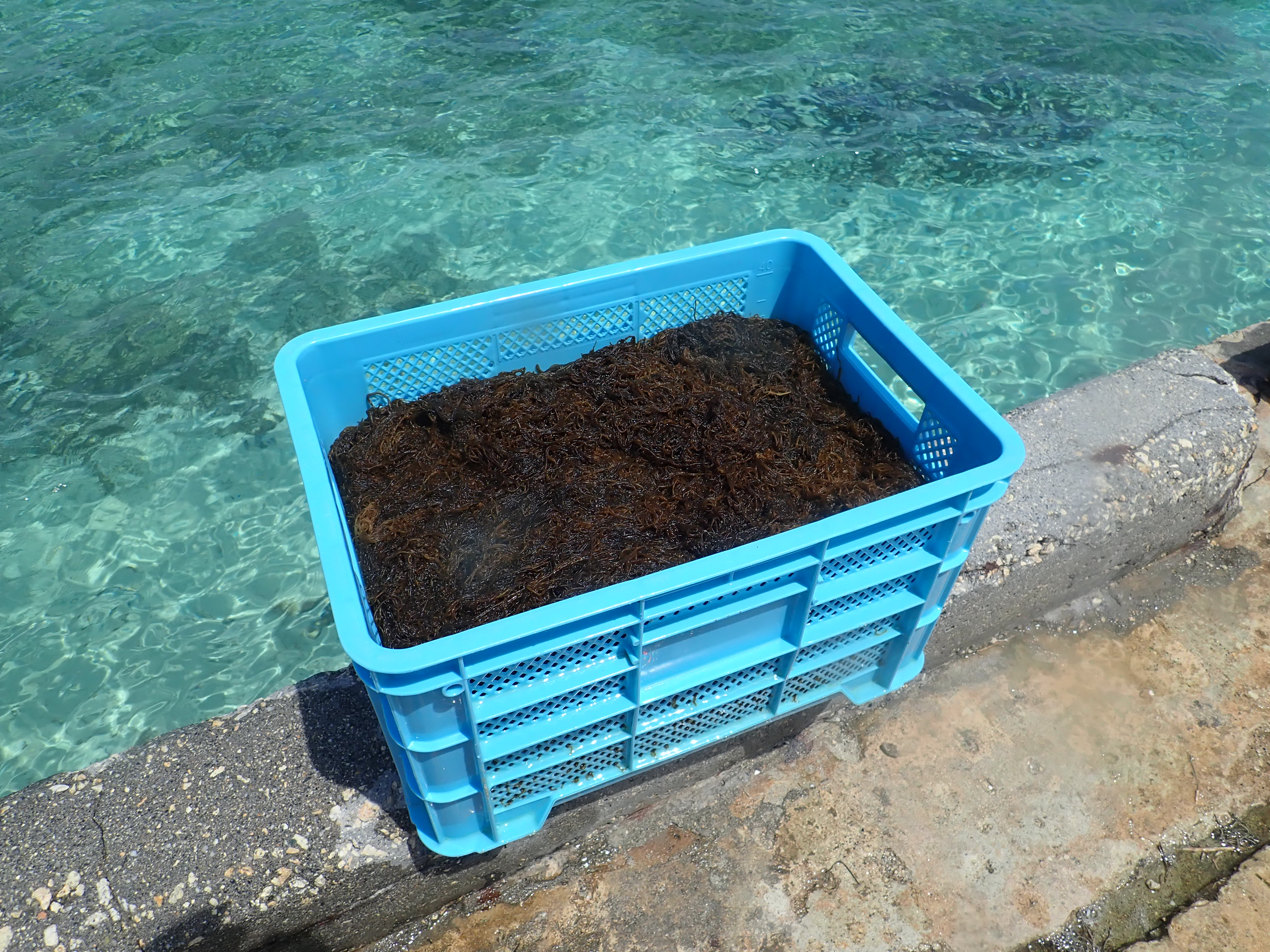 2カゴ(写真は1カゴですが)の天然モズクをゲット![]()