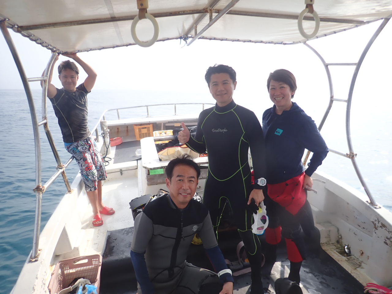 毎年夏に、お父さんと潜りに来てくれる息子さんを加えた4名様を