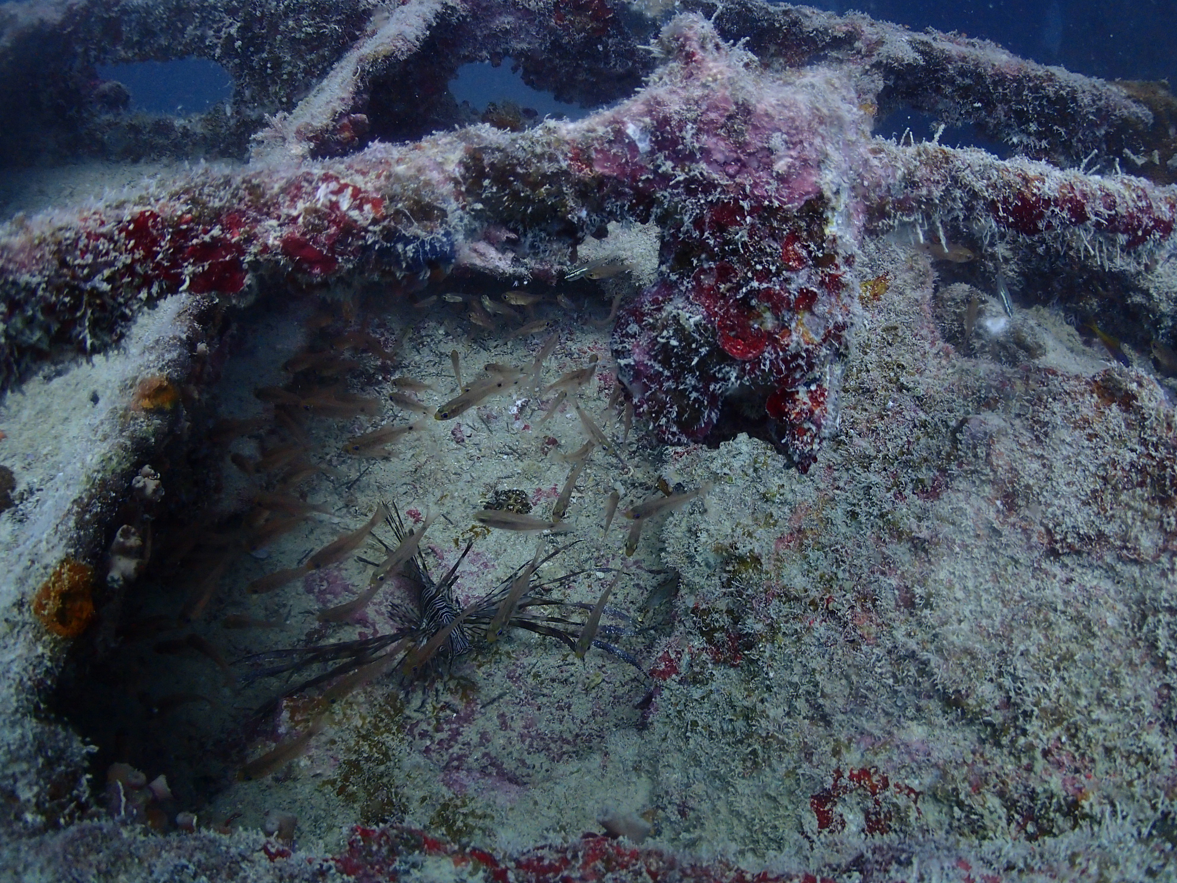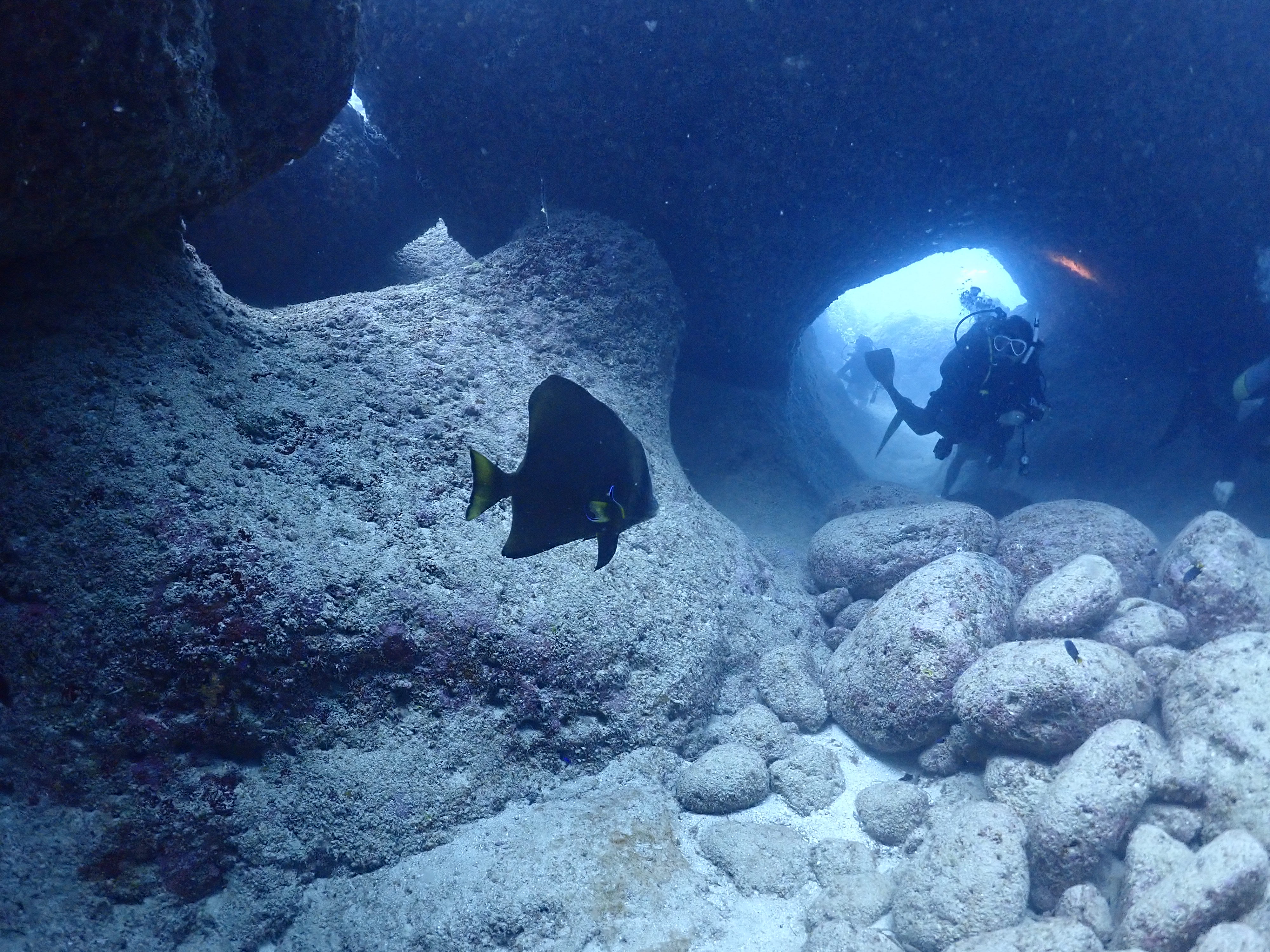 アーチの下ではちょっぴり大きなネムリブカが気持ち良さそうに泳いでいました![]()