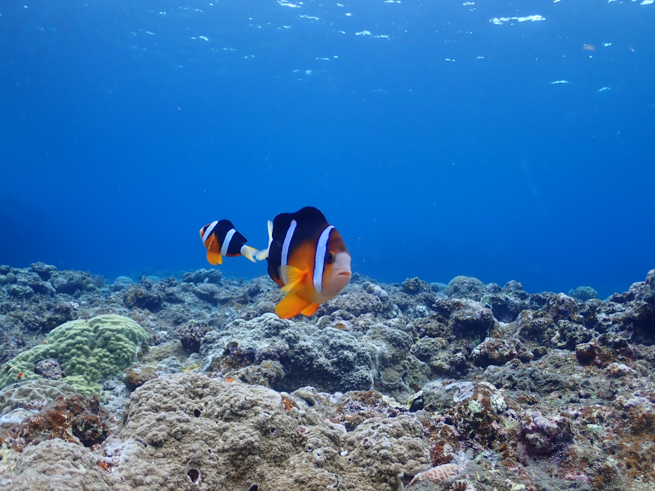 ボートシュノーケルはサンゴを見たり、クマノミちゃんとご挨拶![]()
