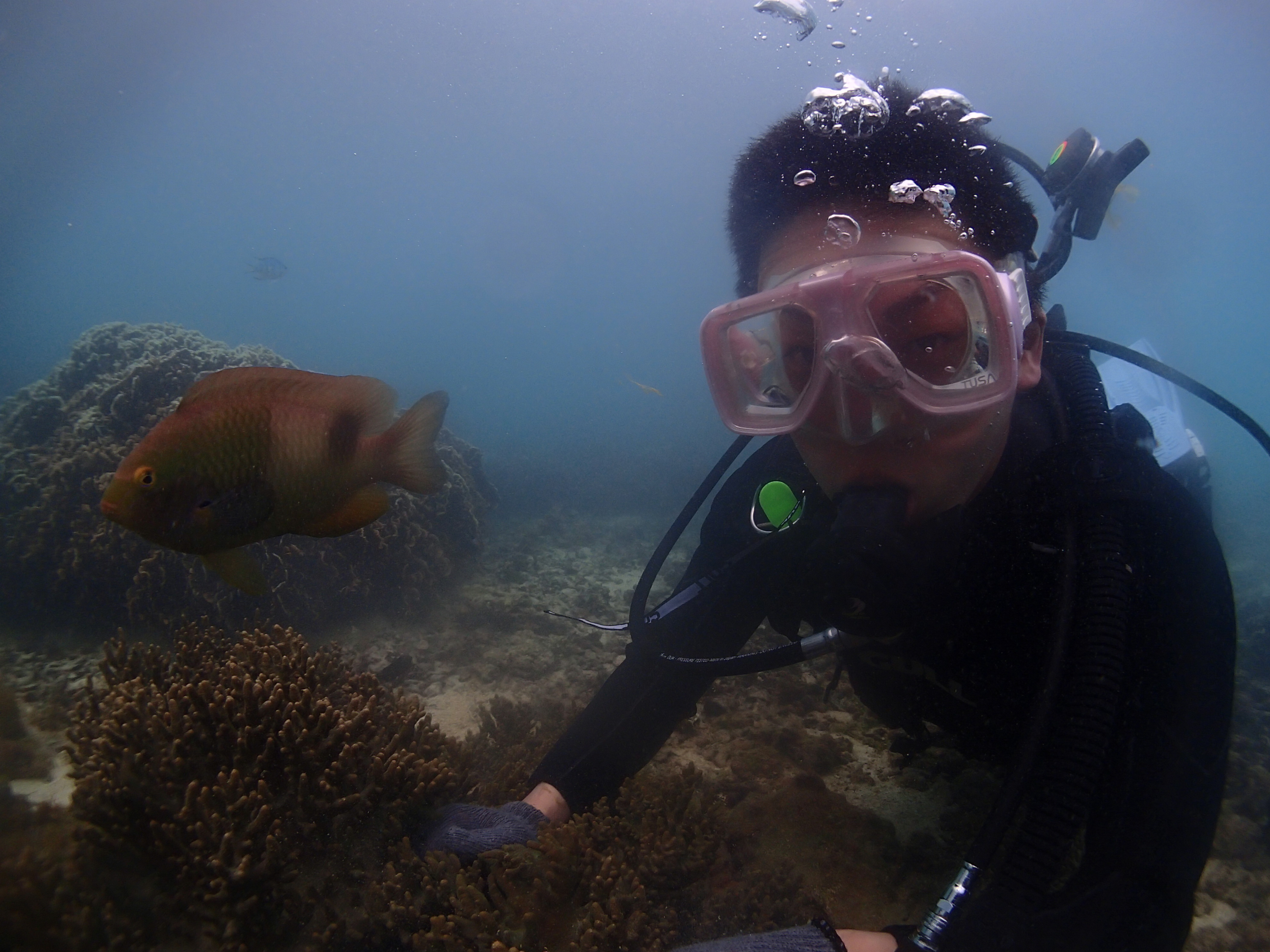 初めてのダイビングの感想は「魚と近くでふれあえて楽しい!」