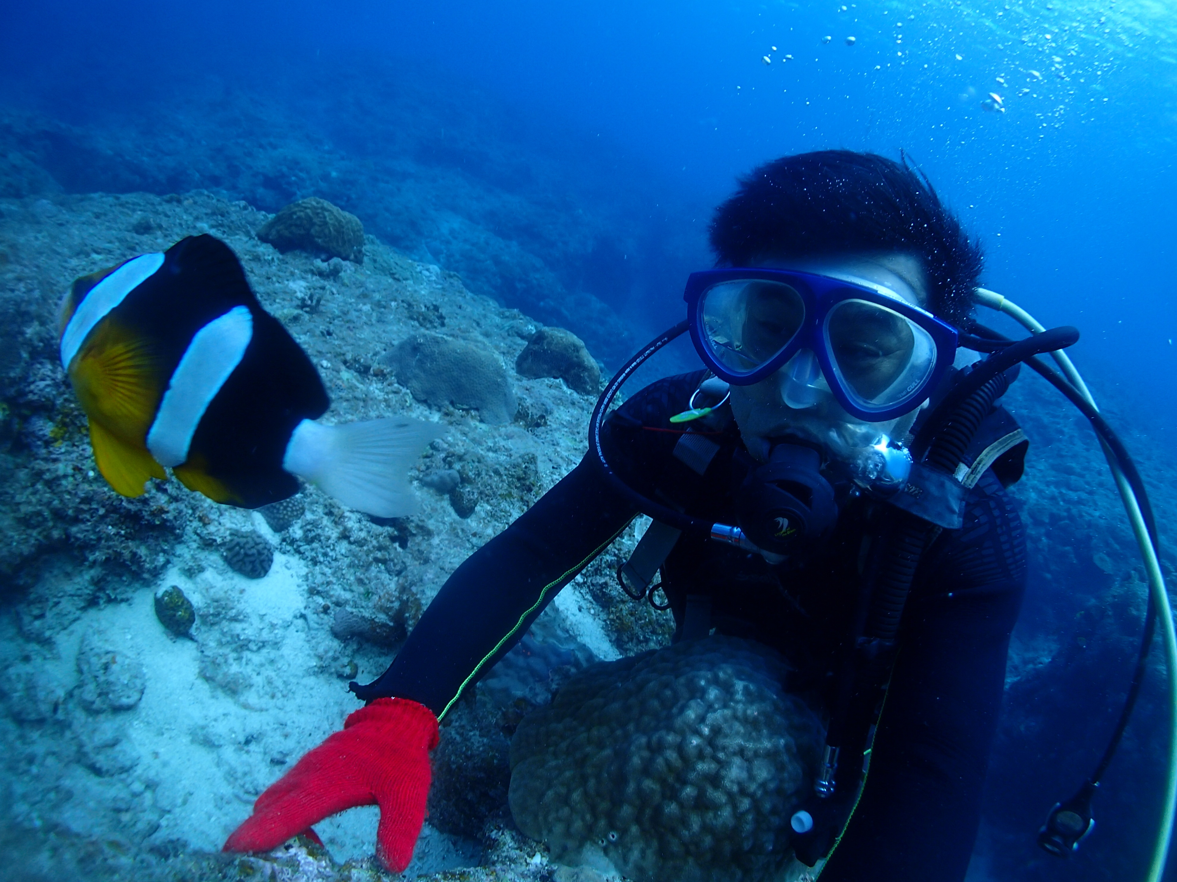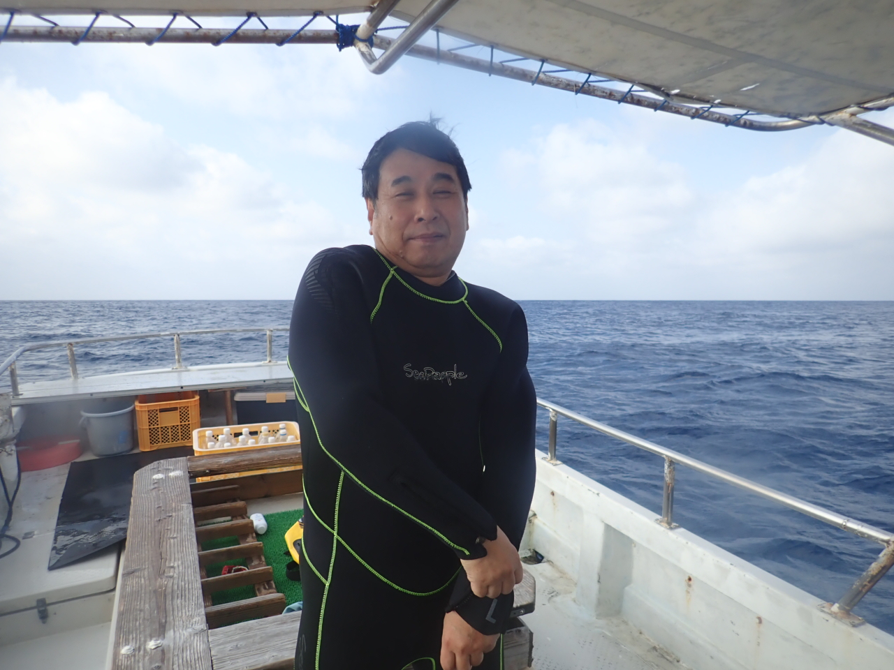 3ヶ月前にご来島のリピーターさんと初めてのボート体験ダイビングのゲストさんの