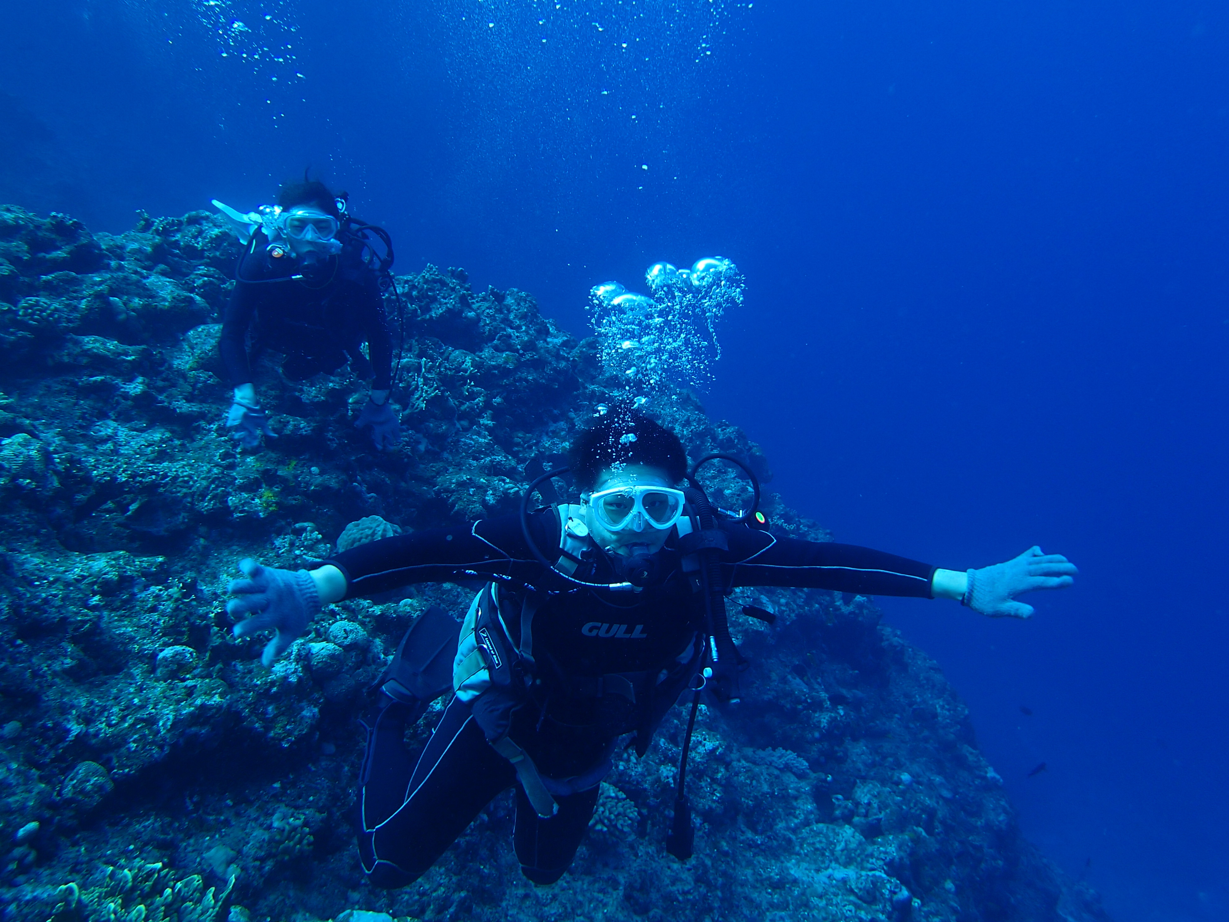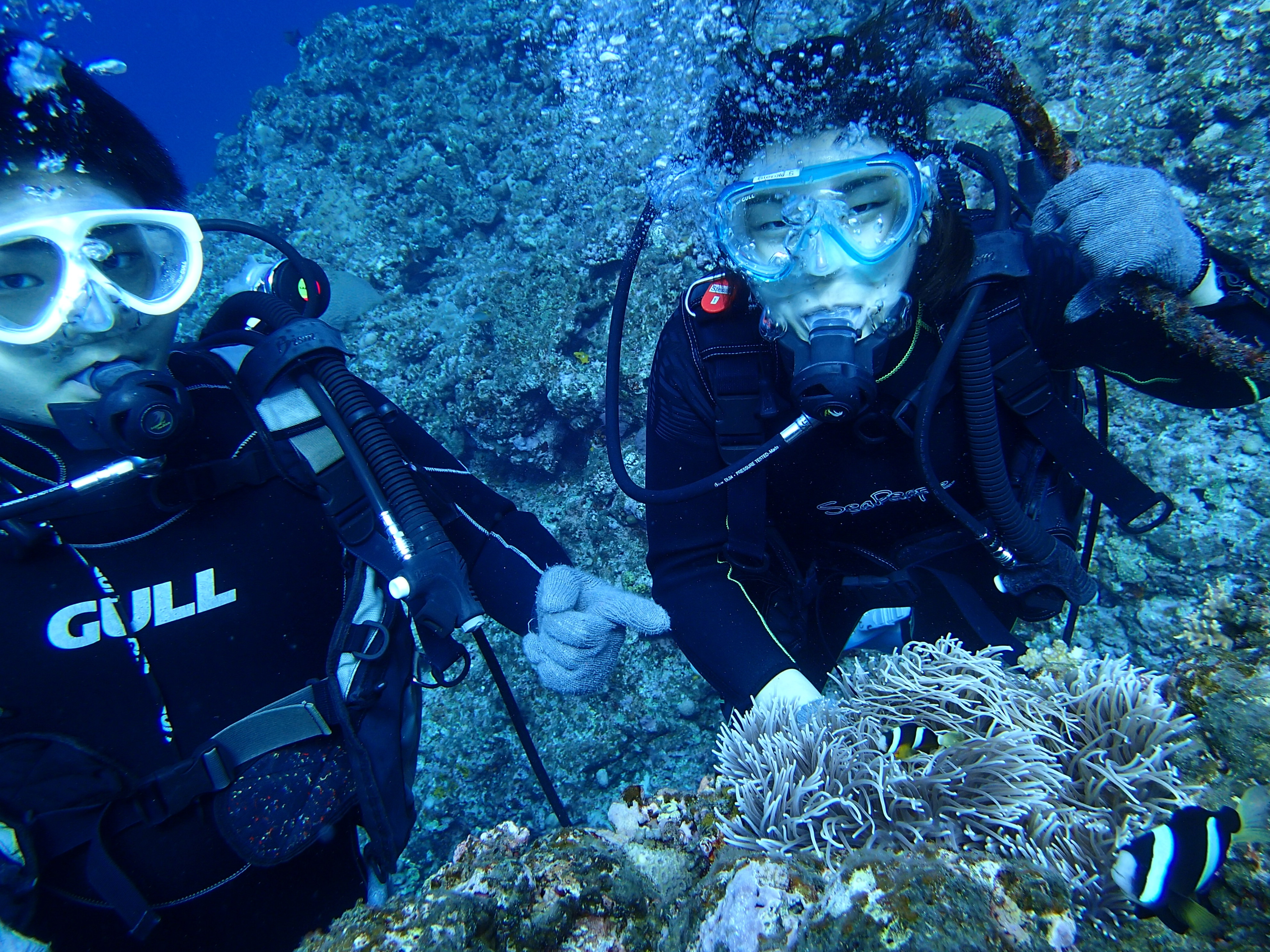 初めてでも結構簡単に潜行して水中ツアーへお二人共楽しんで頂けました