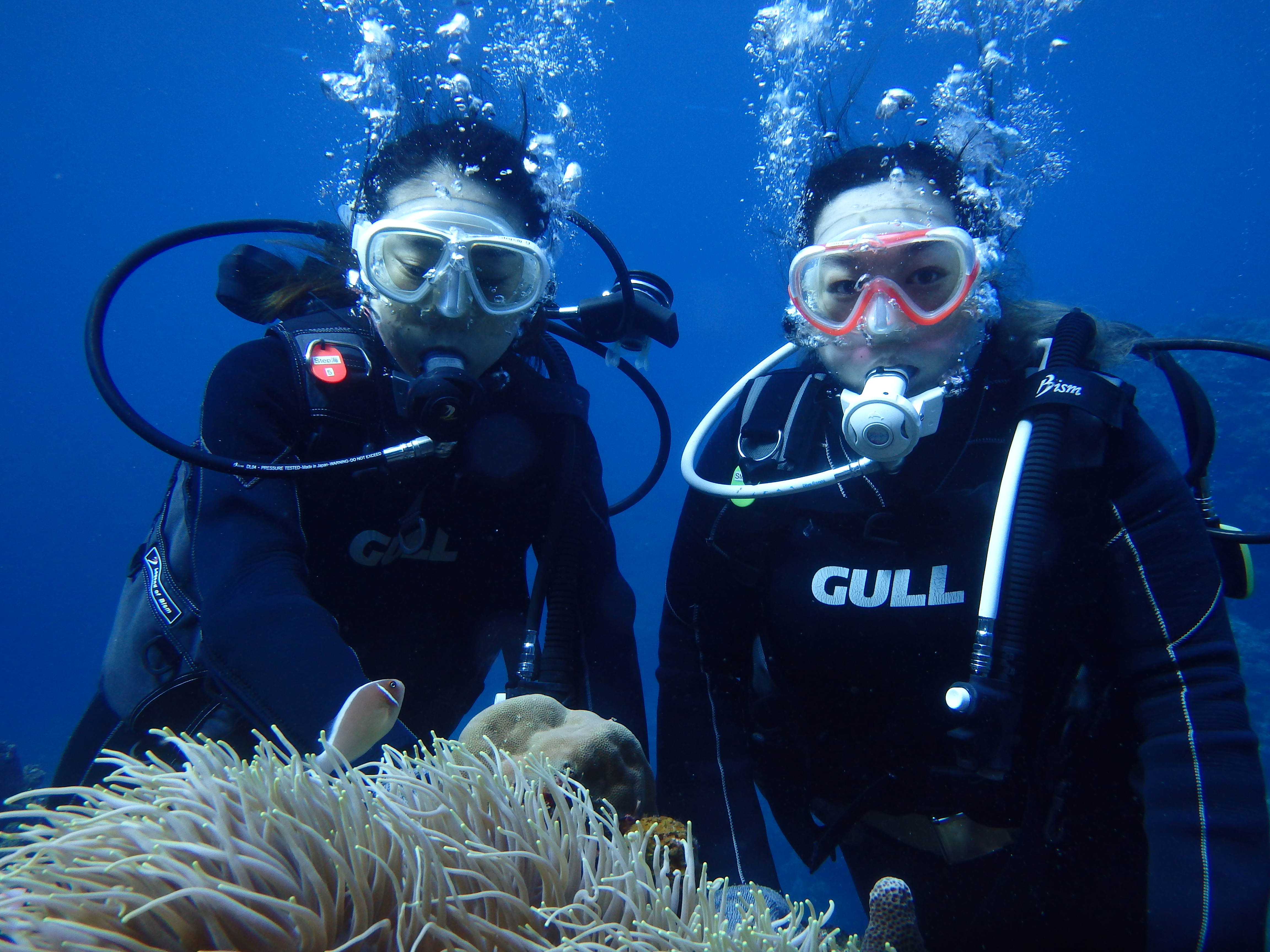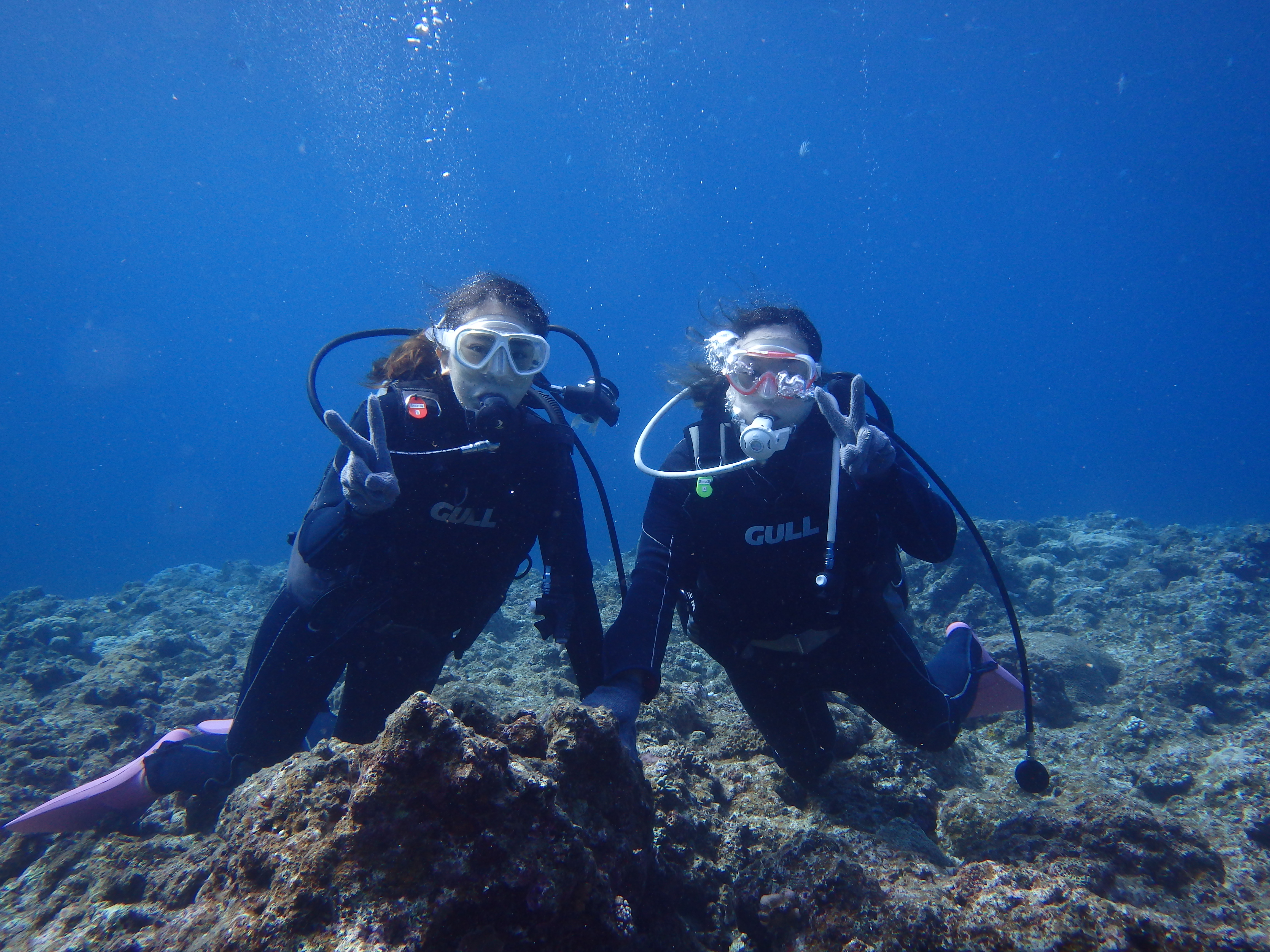 今回初めての体験ダイビングにご参加のお二人とも上手に潜れたのですが