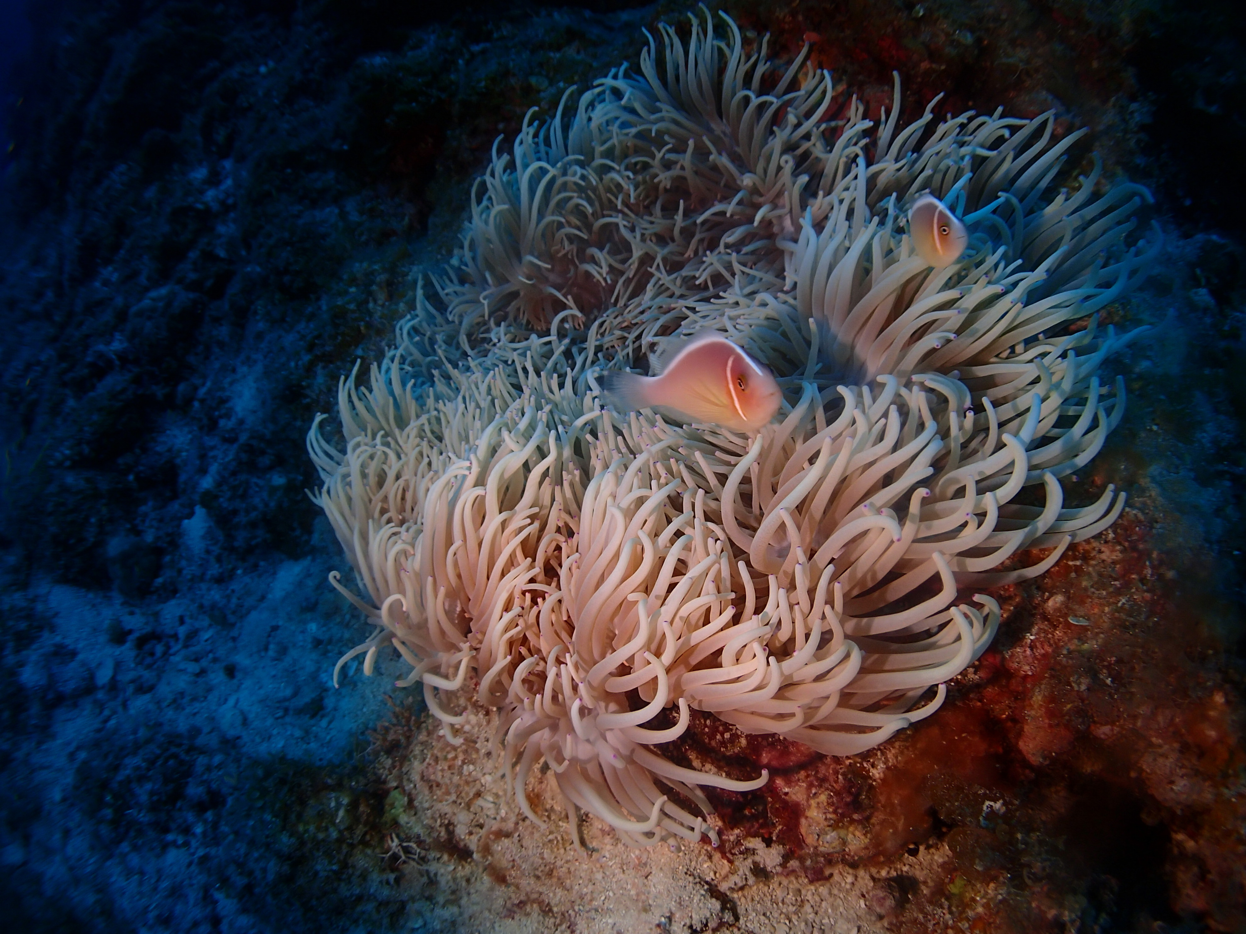 ハナビラクマノミも元気にピンク色です![]()