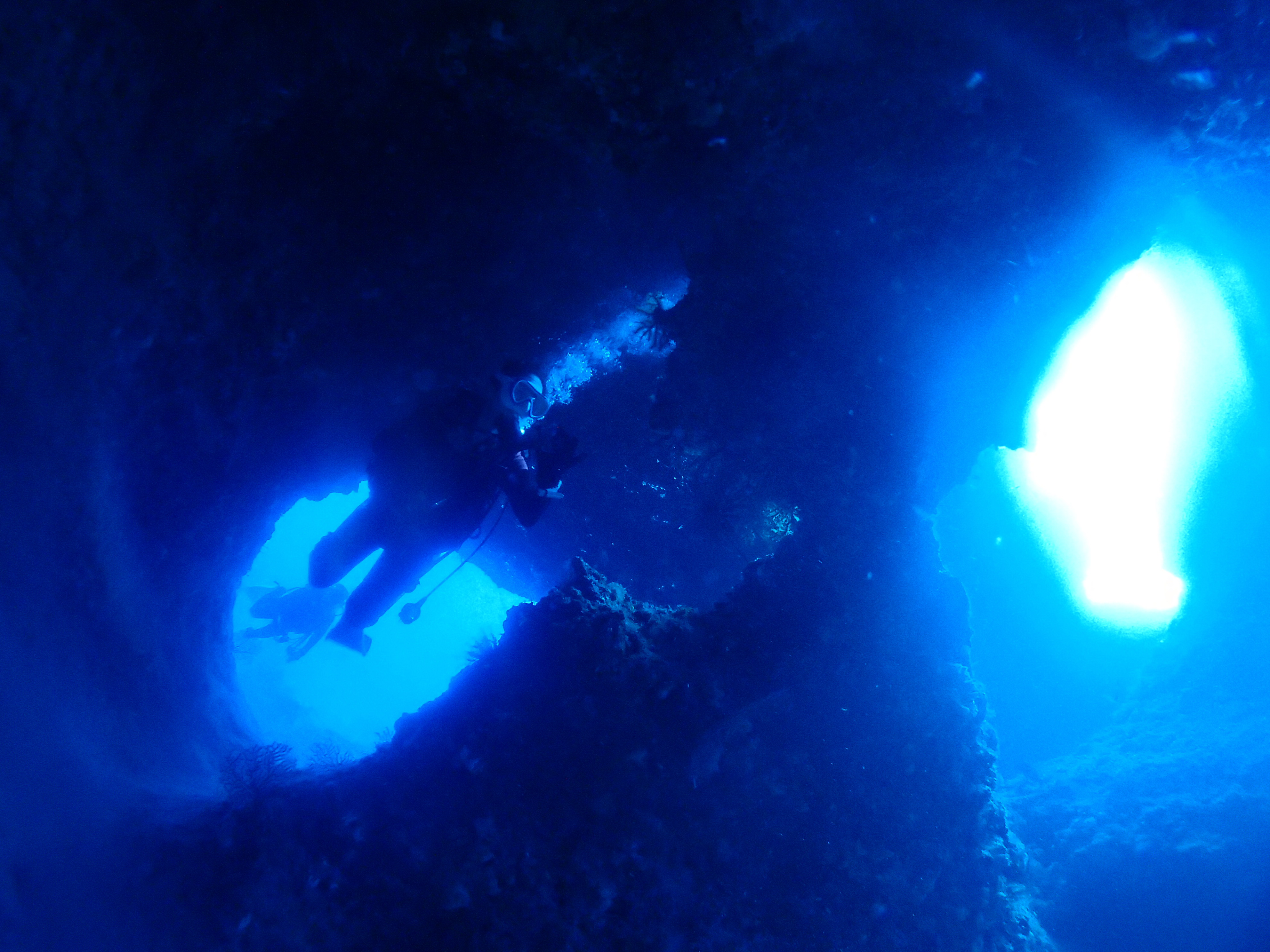 クロスホールはこの後、ゆっくりと上に抜けていくと、お魚がいっぱいです![]()