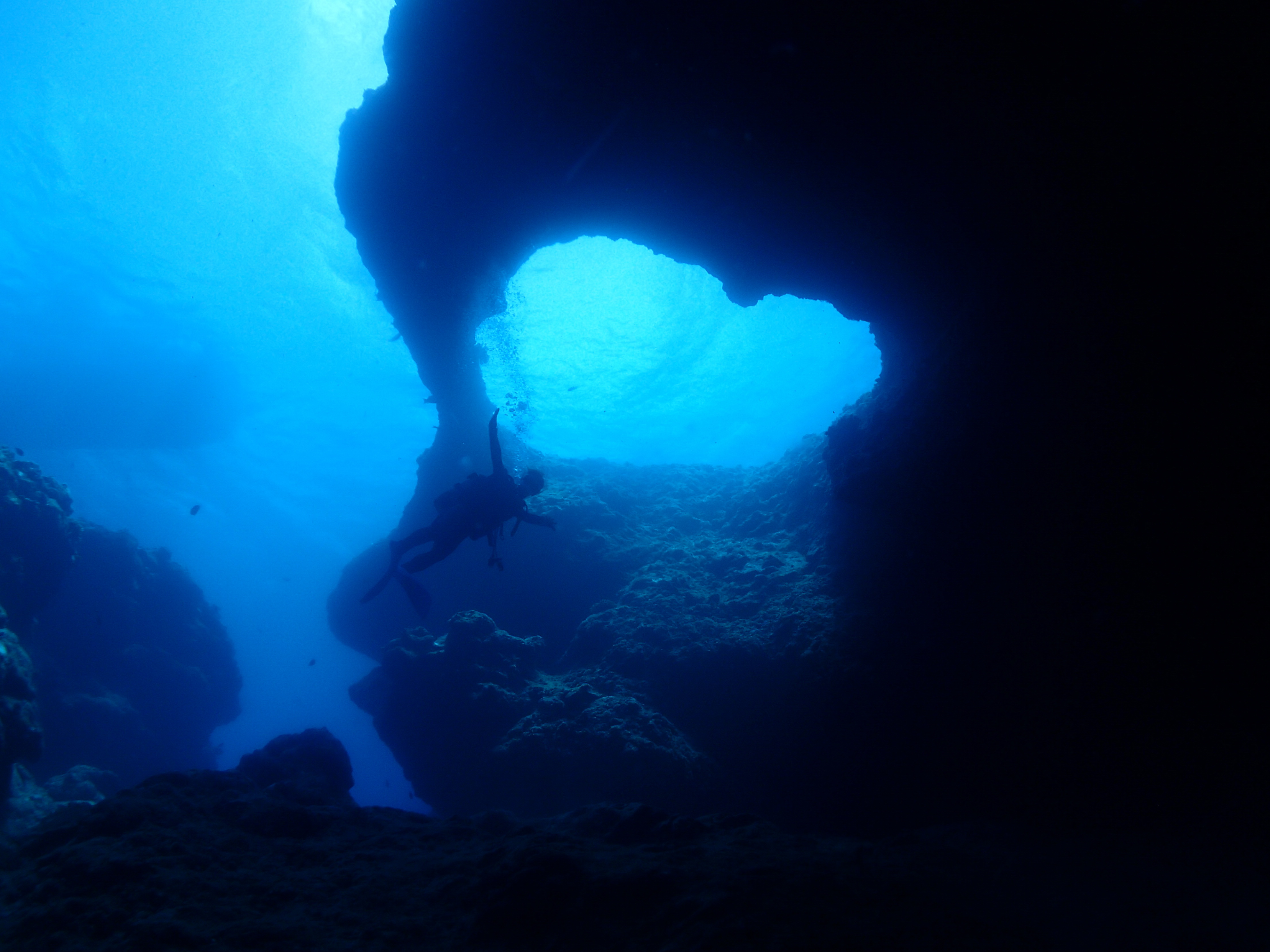 泡の正体は、下の洞窟を潜っているファンダイバーです![]()