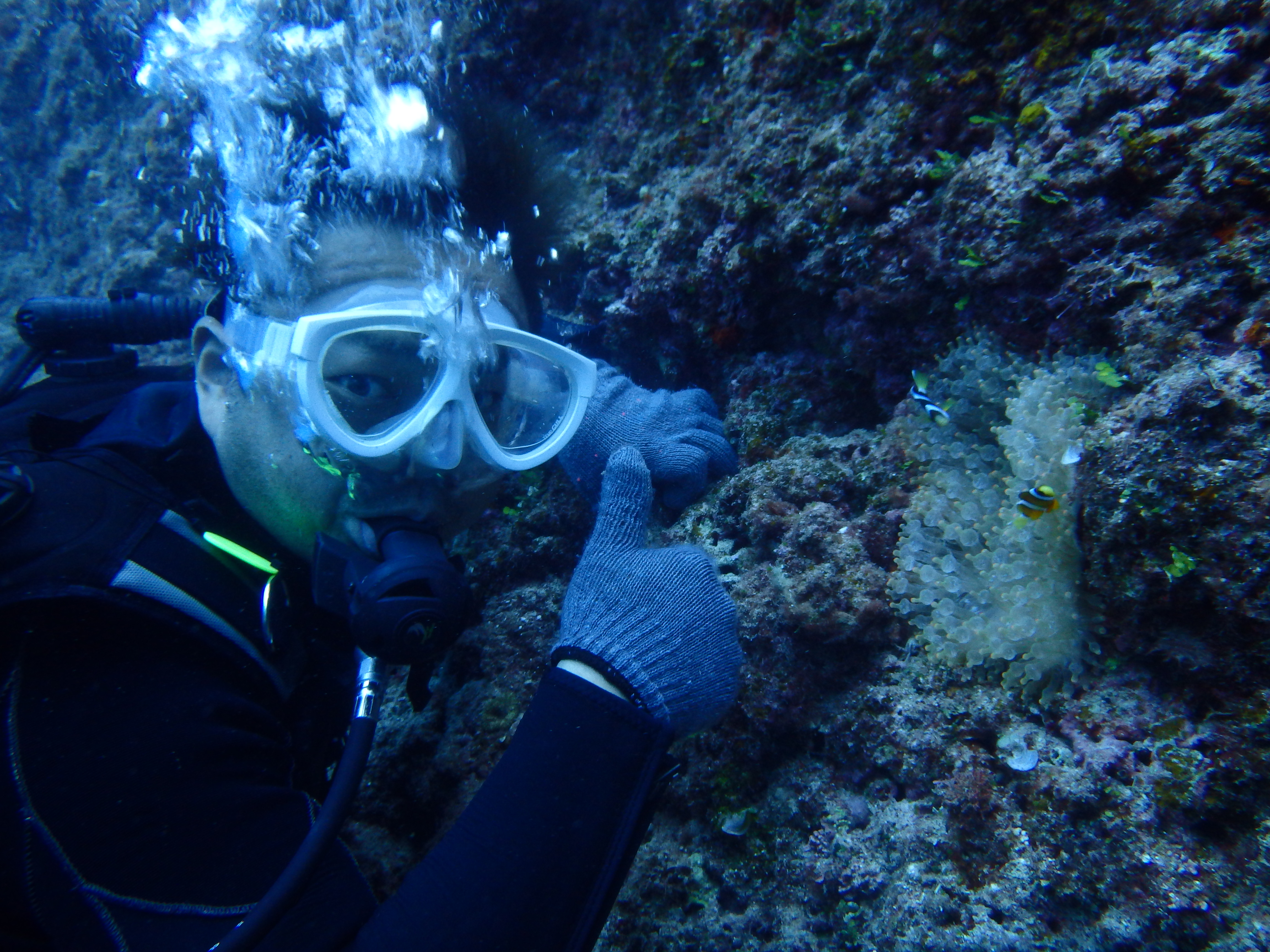 旦那様は体験ダイビングで、奥様はシュノーケルで