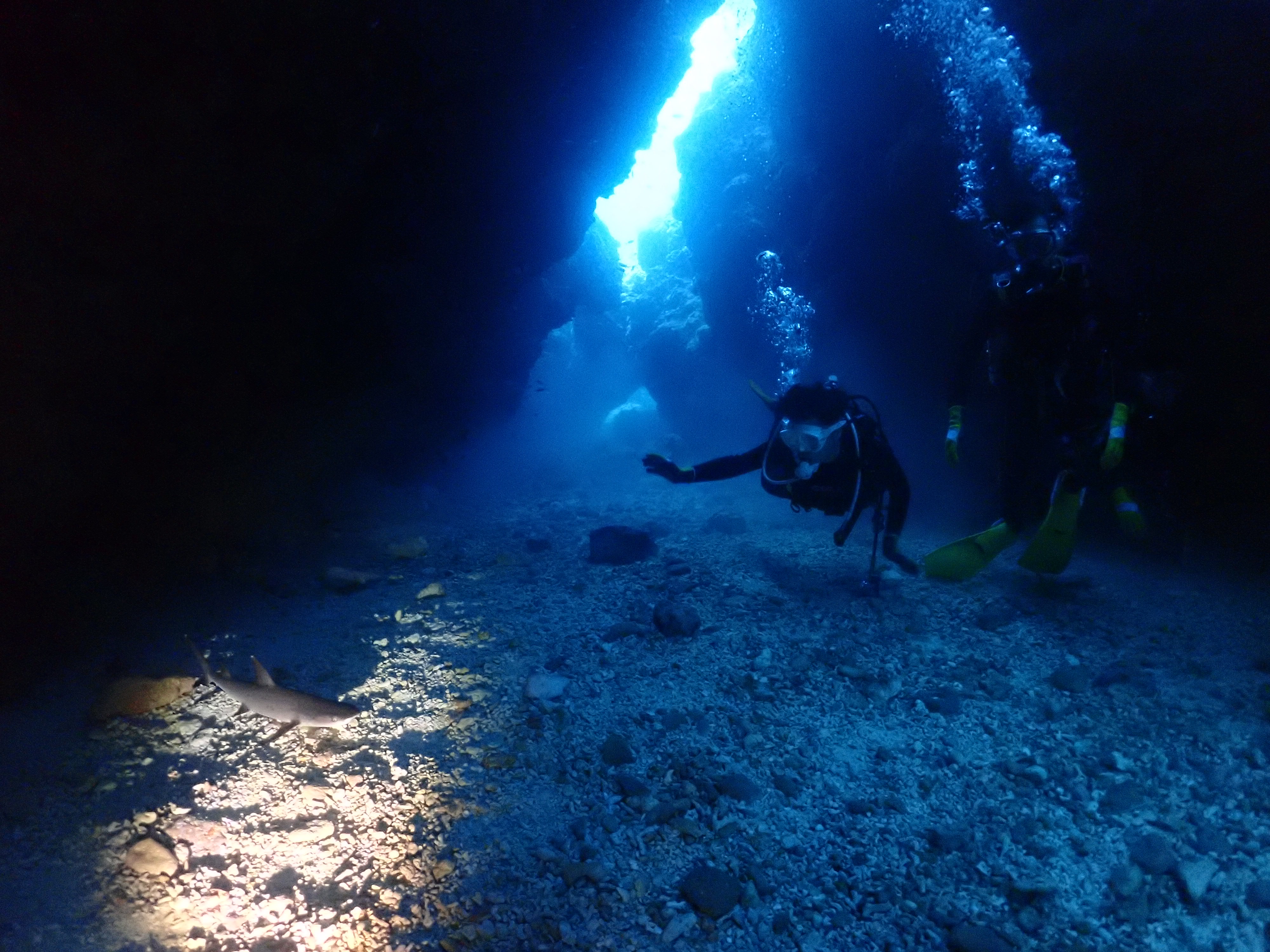 今日は浅瀬のポイントでゆっくり洞窟探検です。