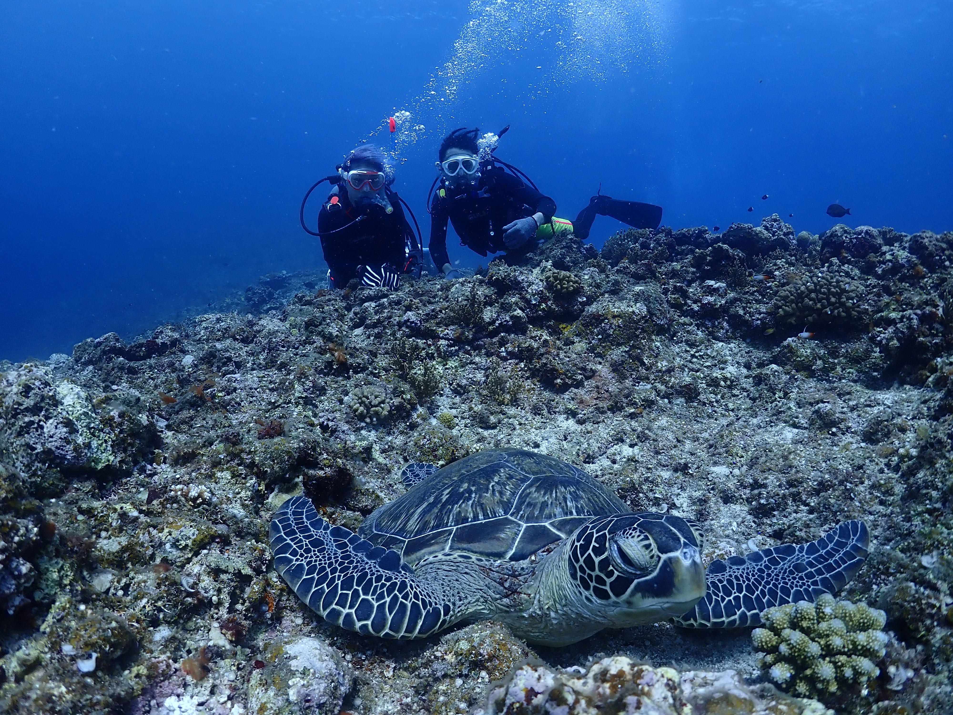講習途中にはアオウミガメさんとも遭遇![]()