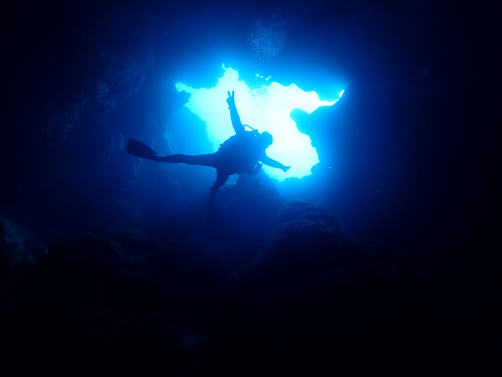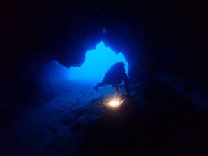 2ダイブ目は深場のサンゴホールへご自身でもライトを持っていたので