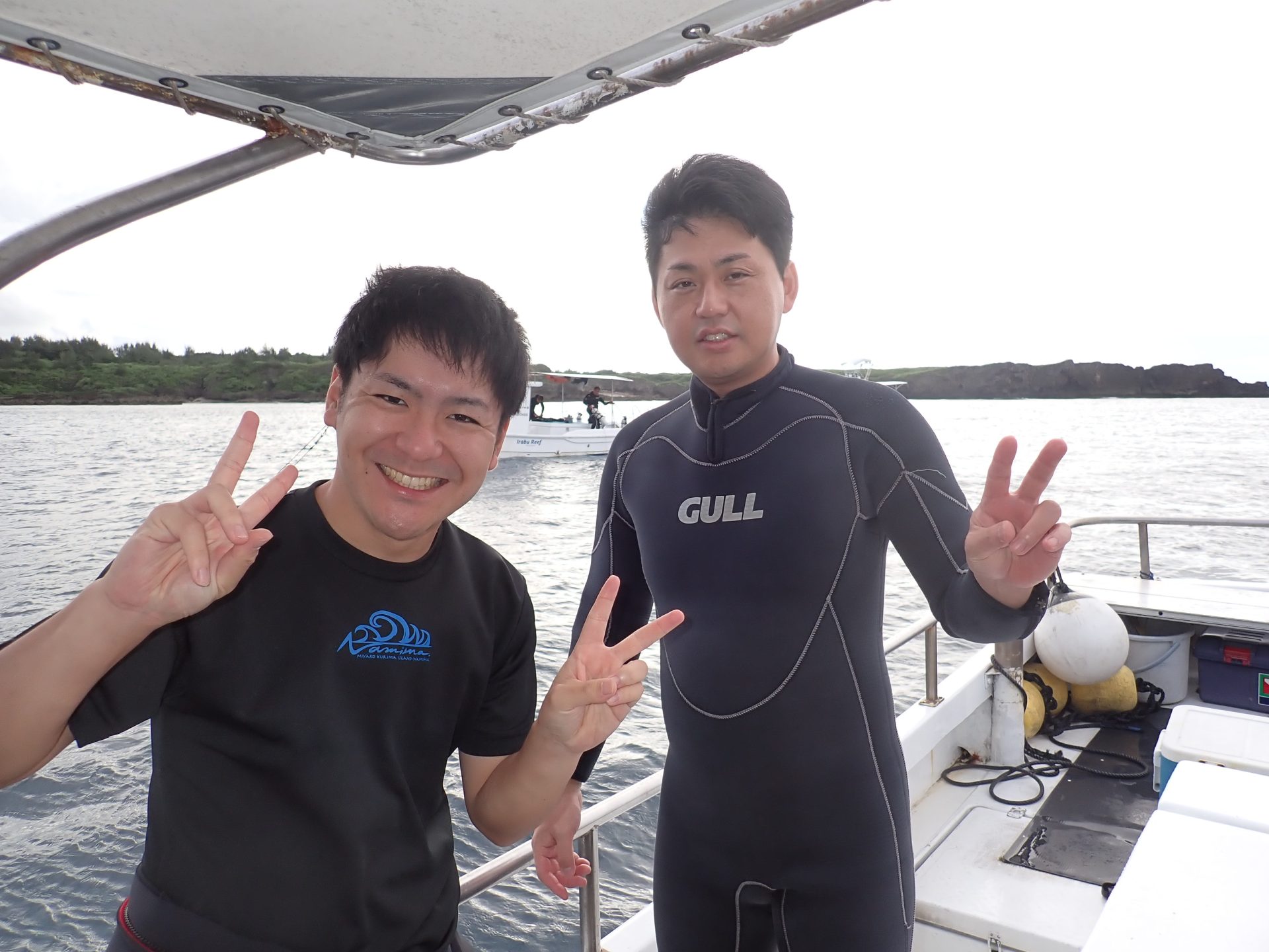 リフレッシュ講習チームとリピーターさんのファンダイビングチームに分かれて