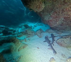 今日もに2匹寄り添って仲良しなホワイトチップシャーク![]()