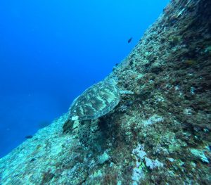 久しぶりの本ドロップでまずはご飯に夢中のアオウミガメに遭遇!