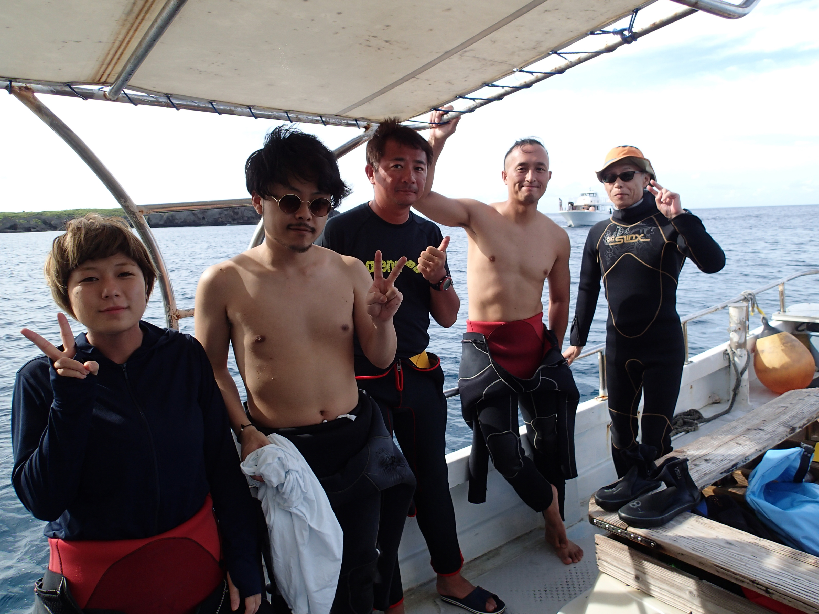 午前中はファンダイビング&体験ダイビングの2チーム全員リピーターさんで感謝![]()
