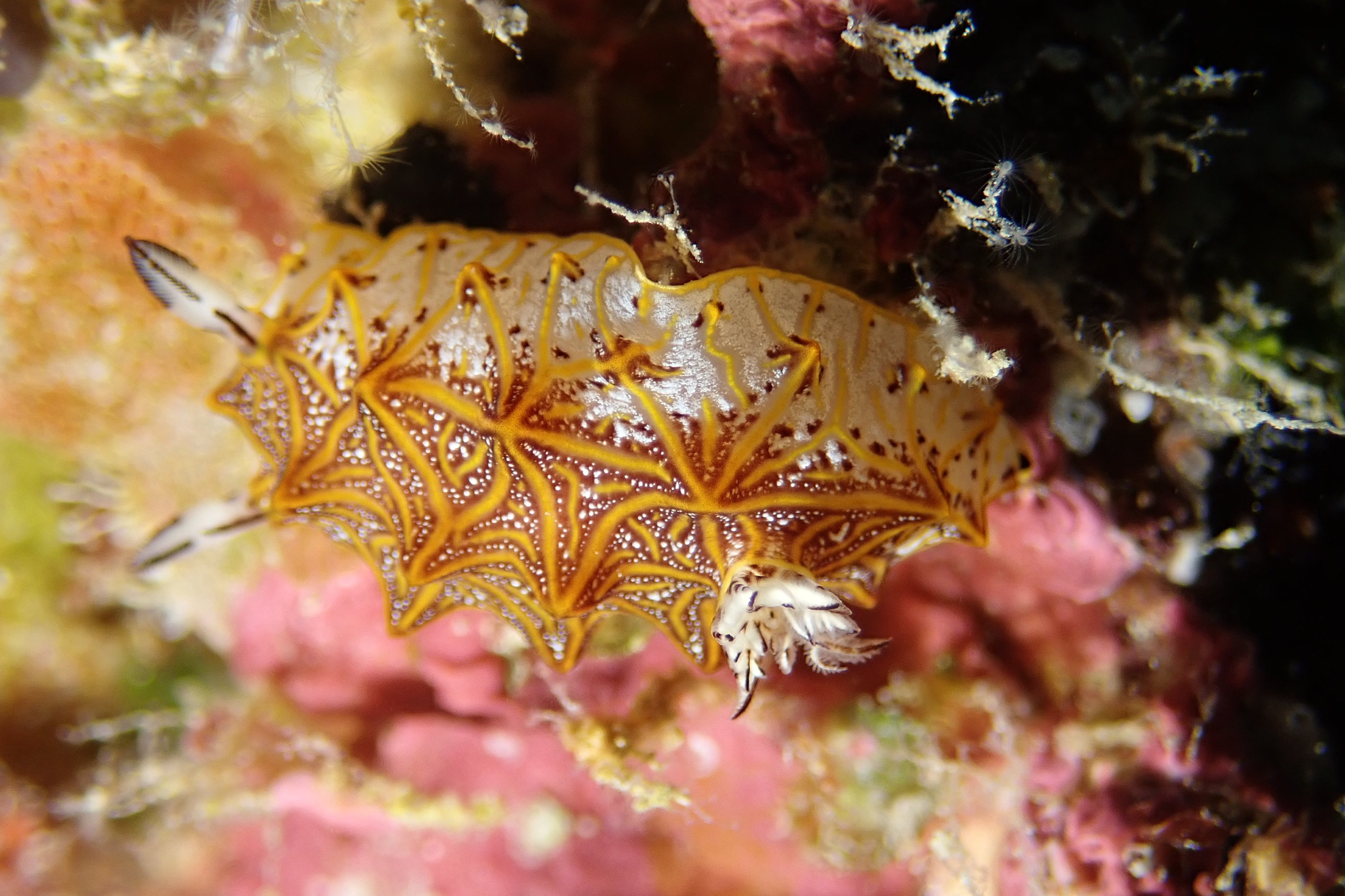 まだまだ小さいミヤケテグリの幼魚 と モザイクウミウシ