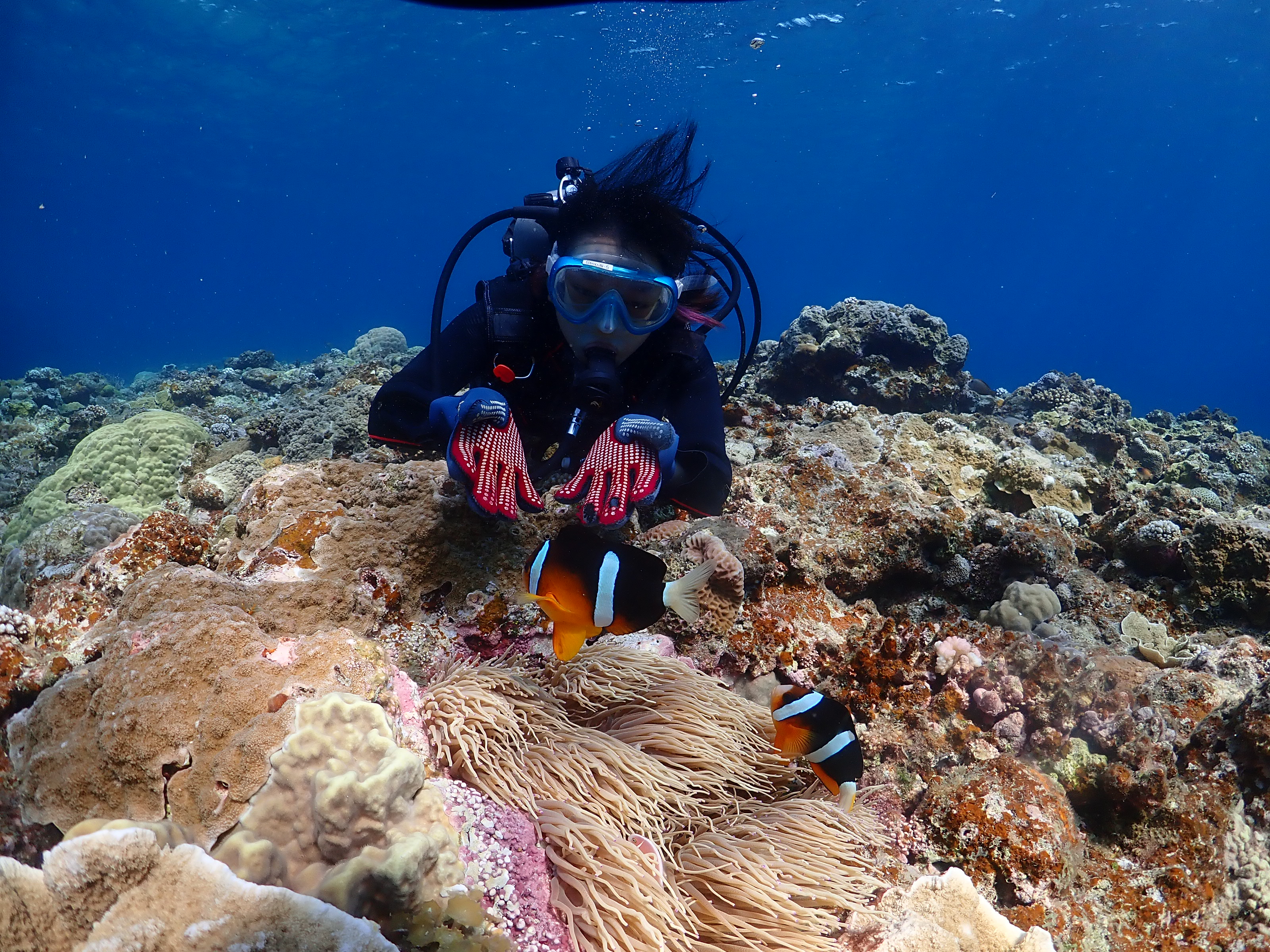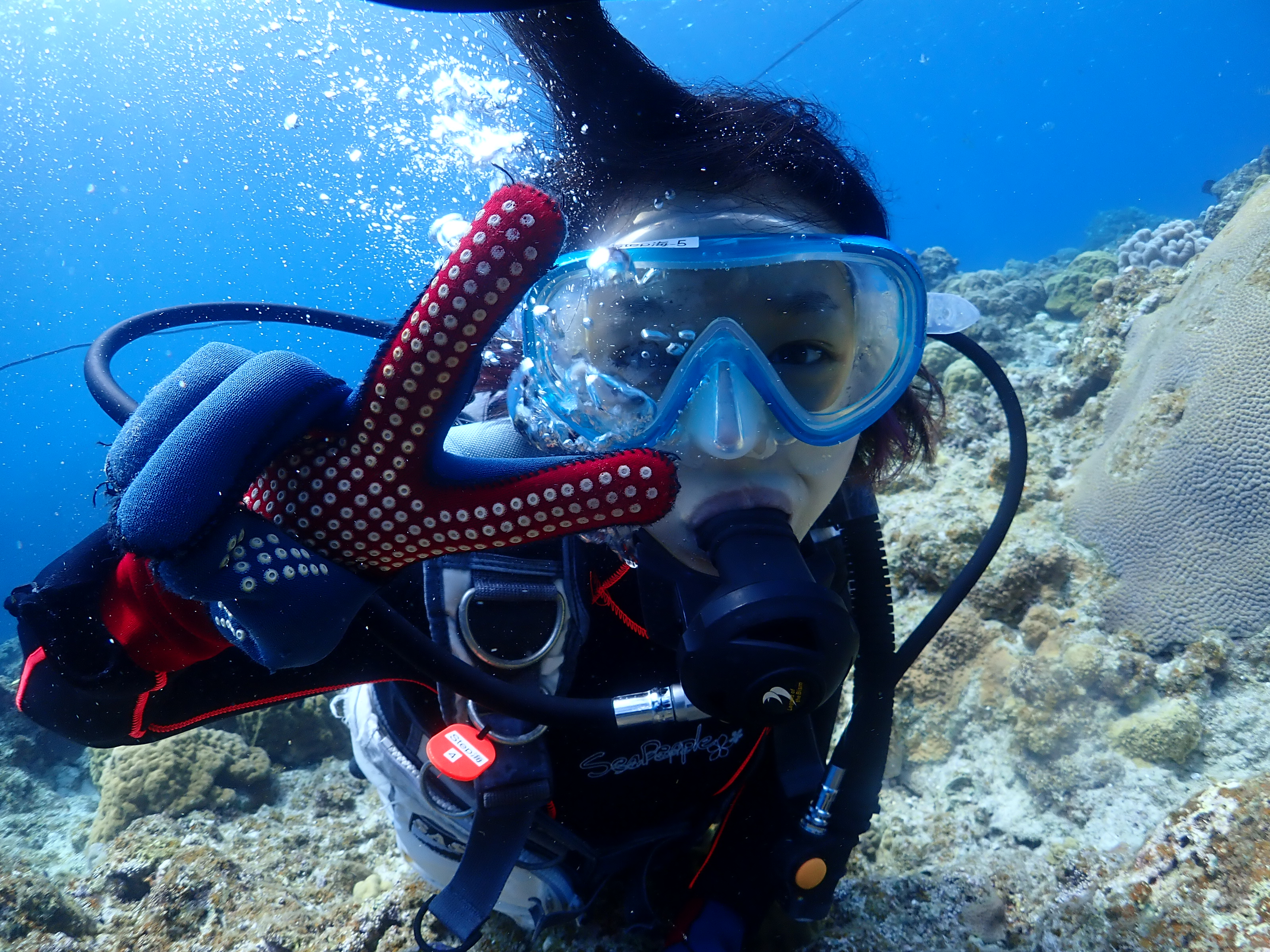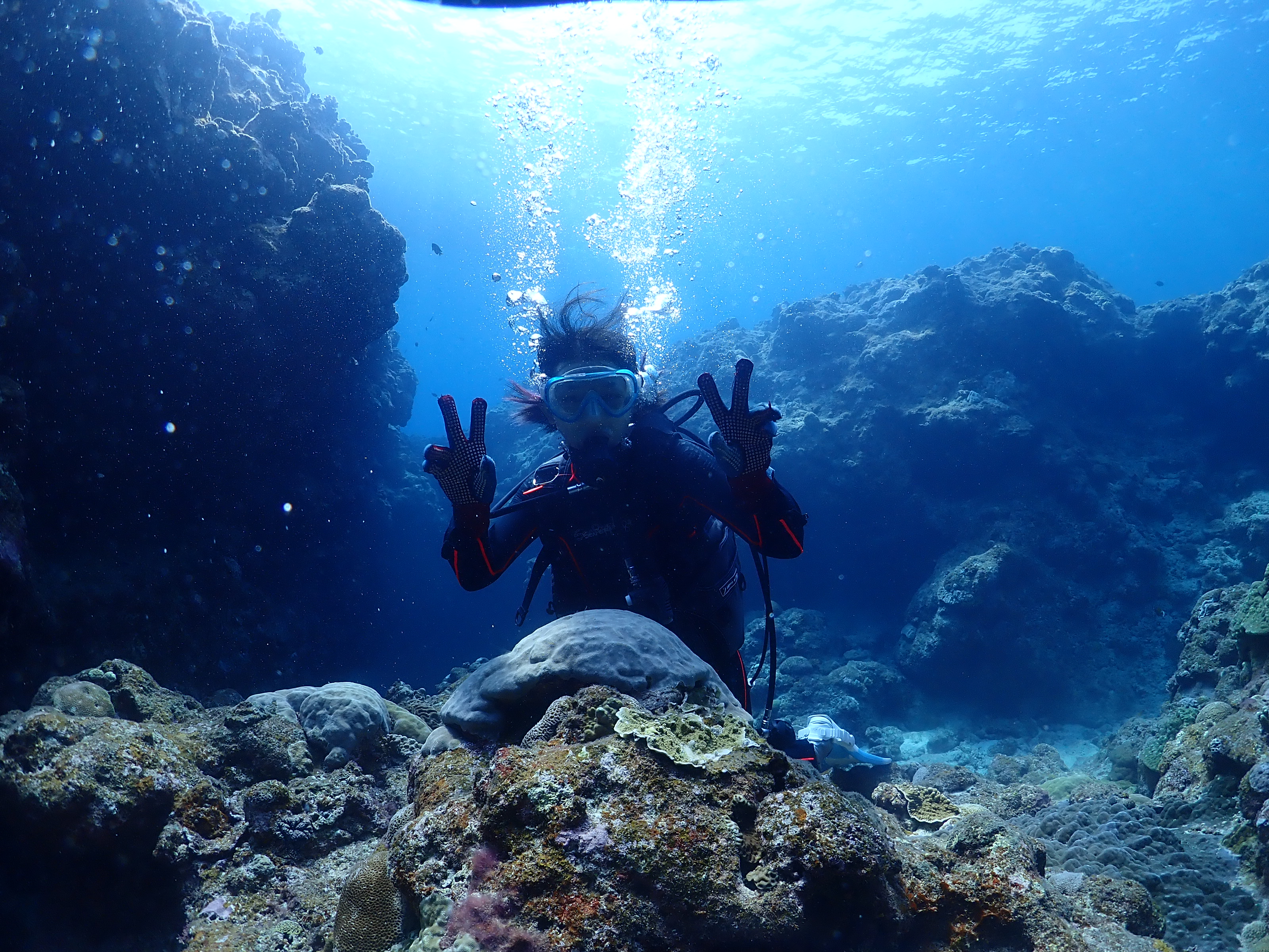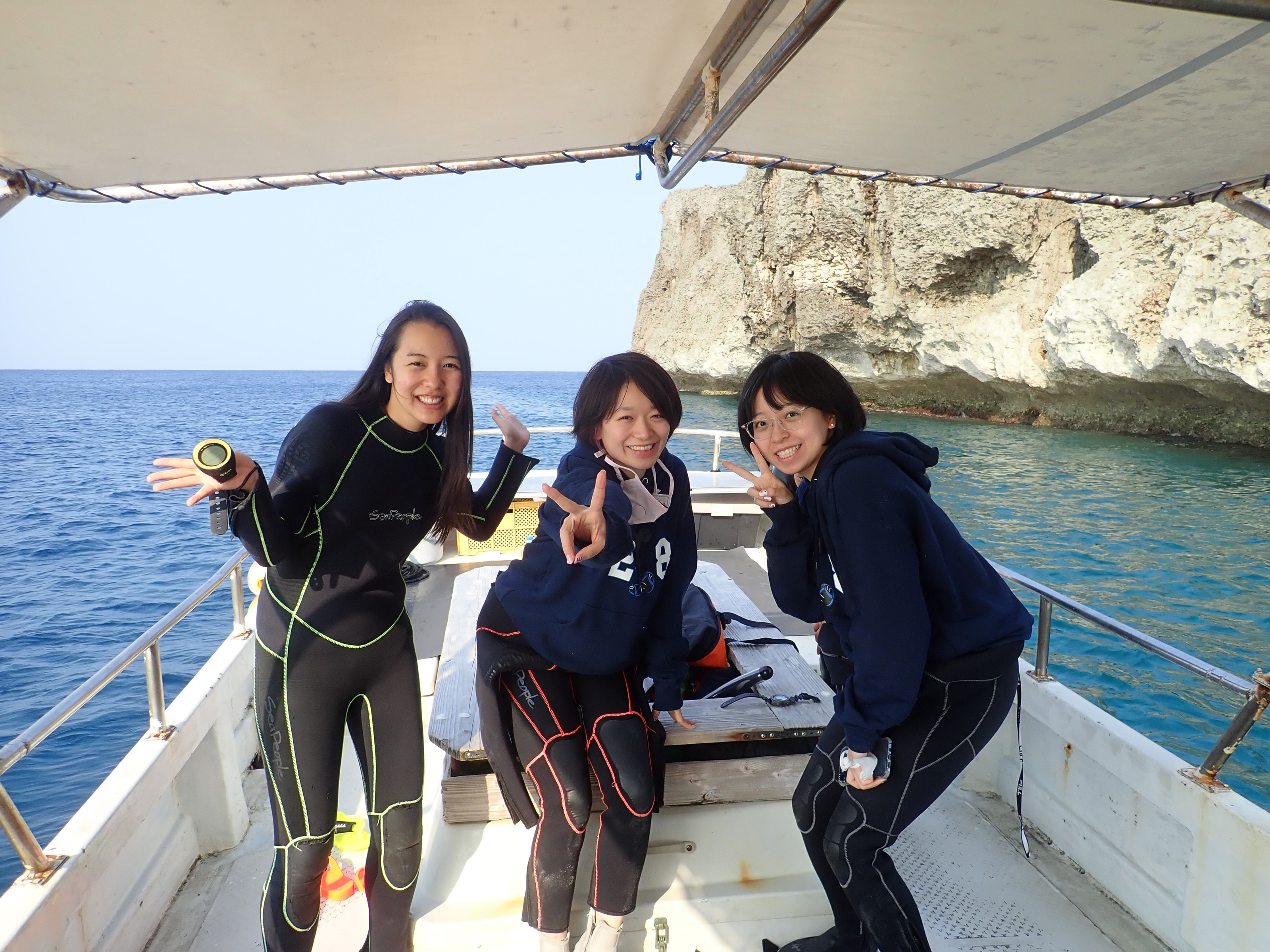 今日も初めての体験ダイビングの姉妹とリピーターさんとゆきちゃんのお友達