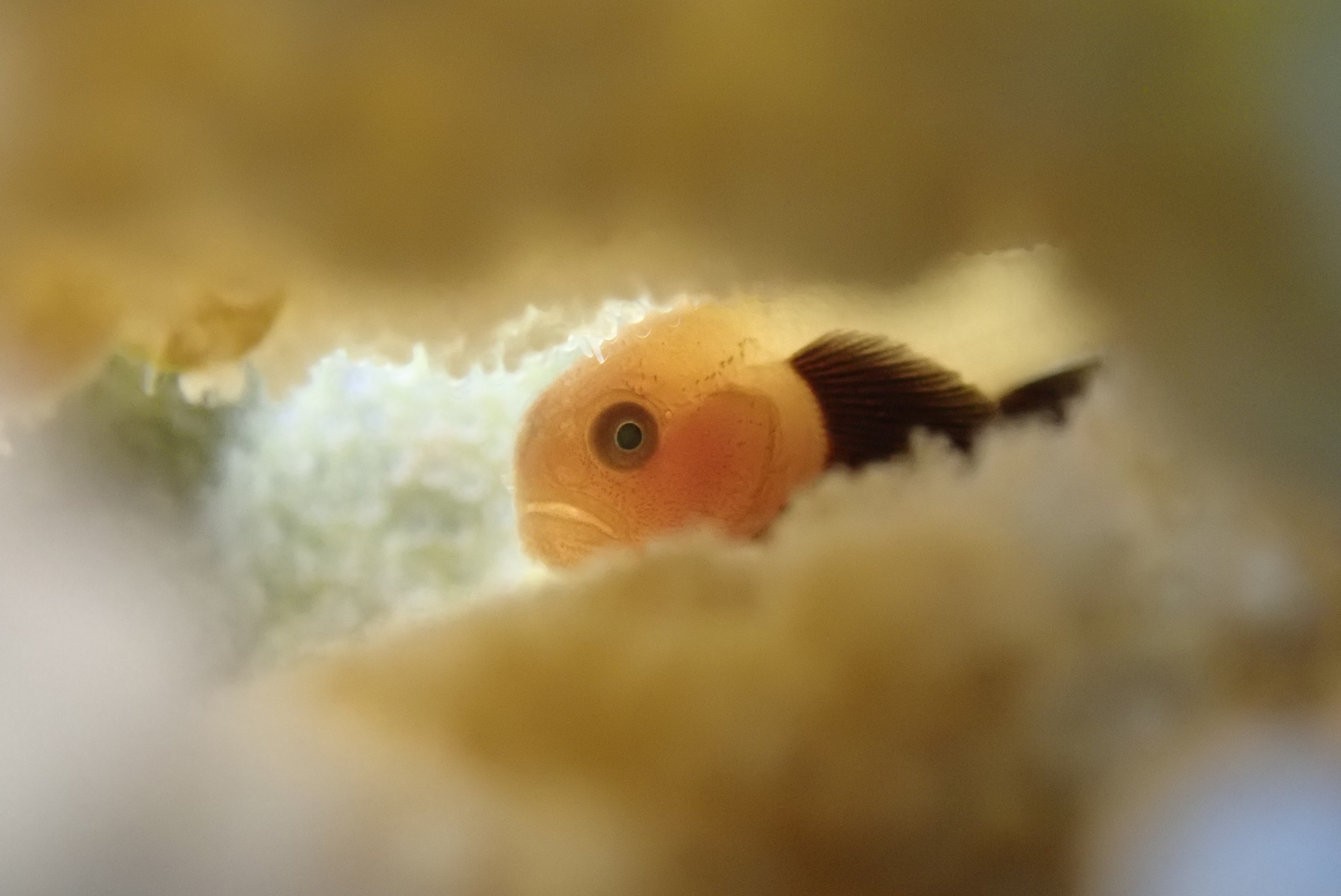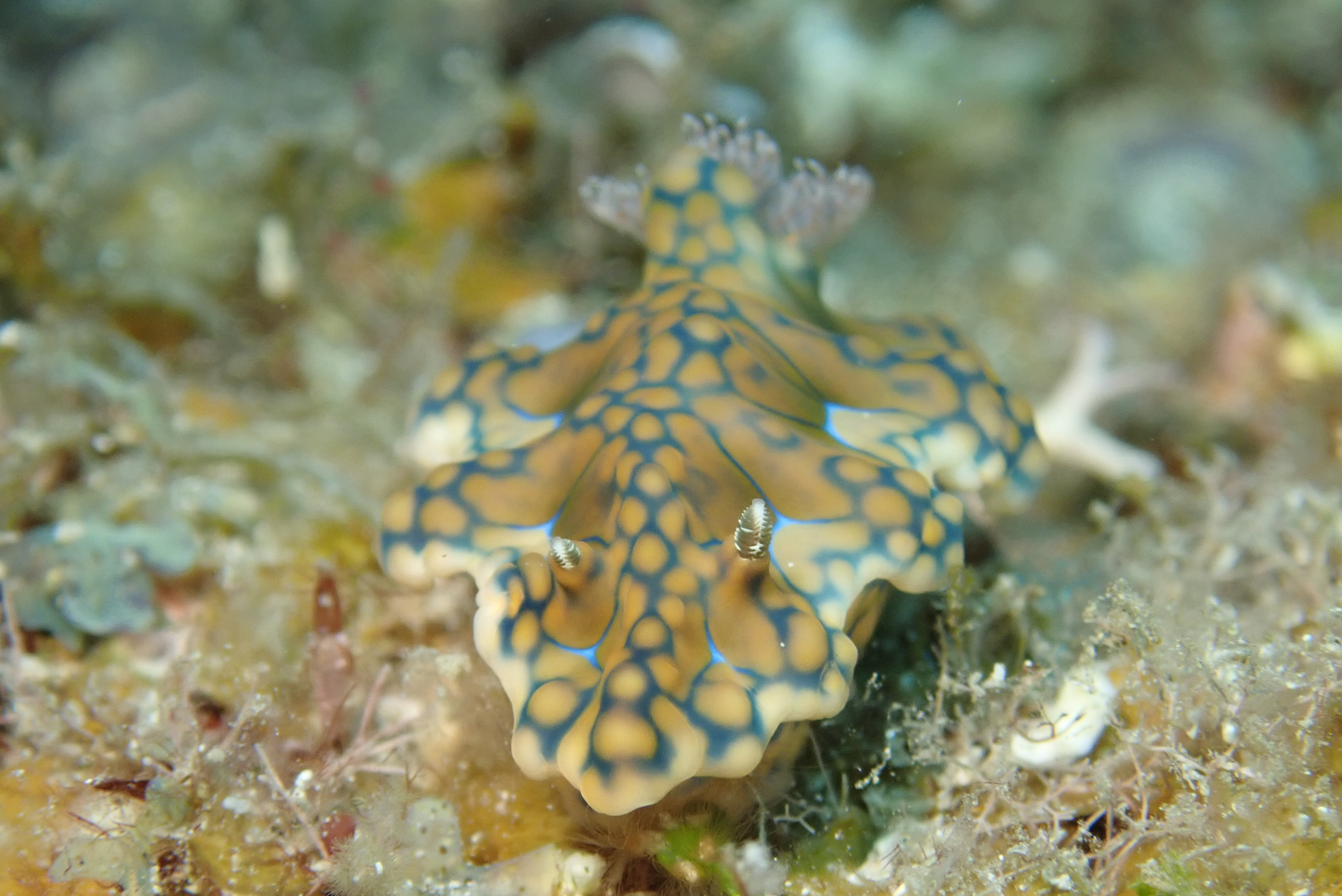 ミアミラウミウシの正面から と ひっよこりパンダダルマハゼ
