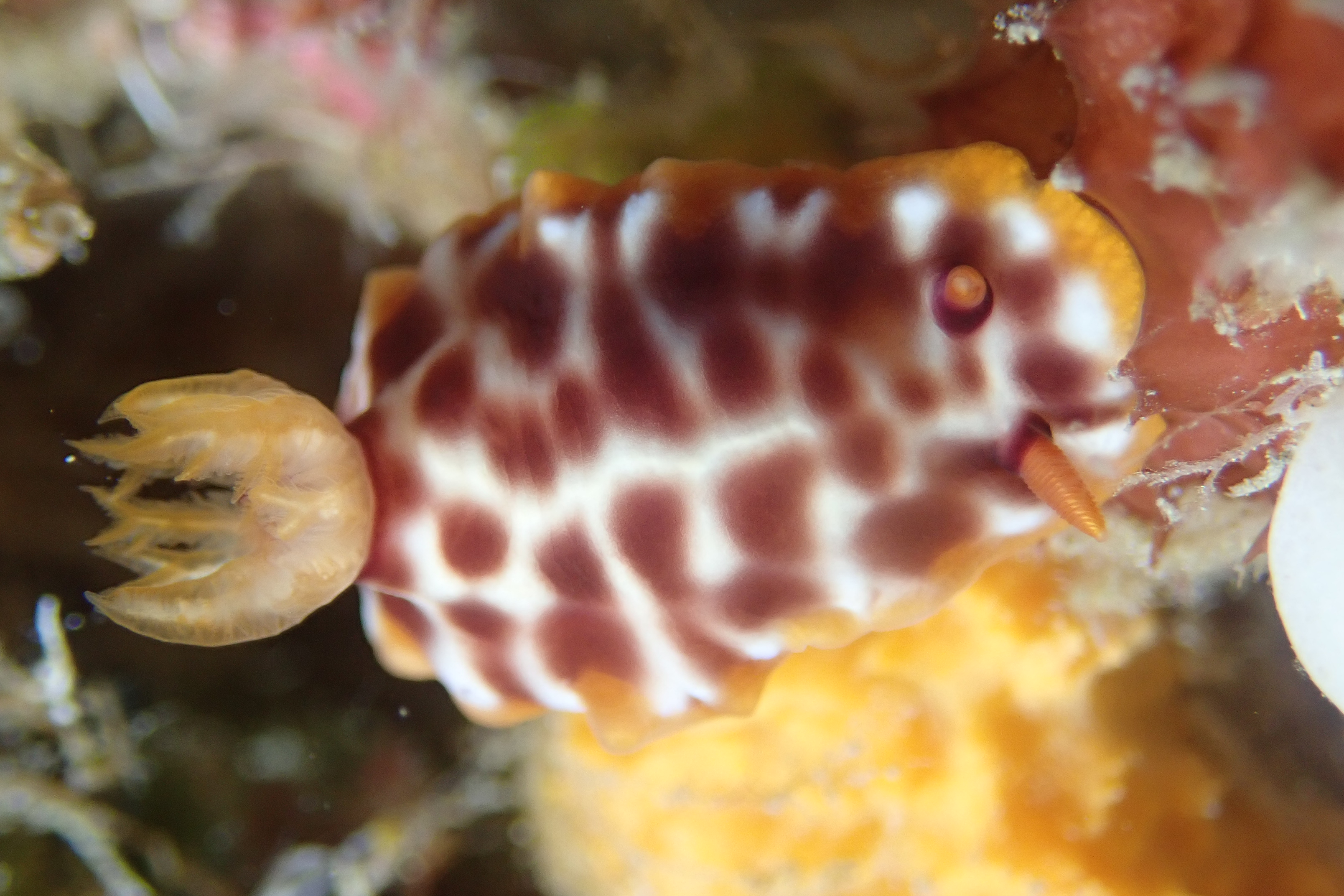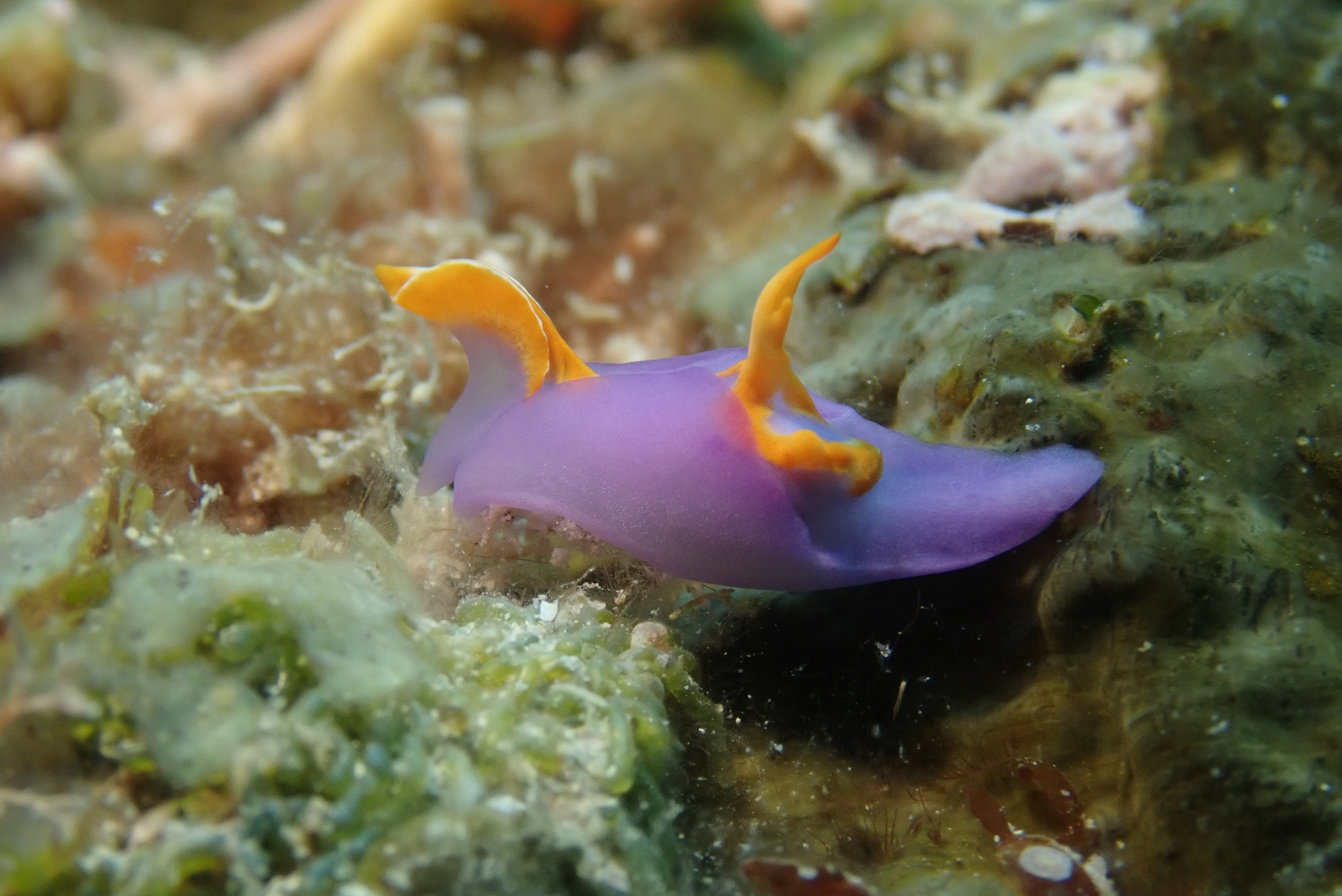 枝を背負ったイガグリウミウシ と ムラサキウミコチョウ