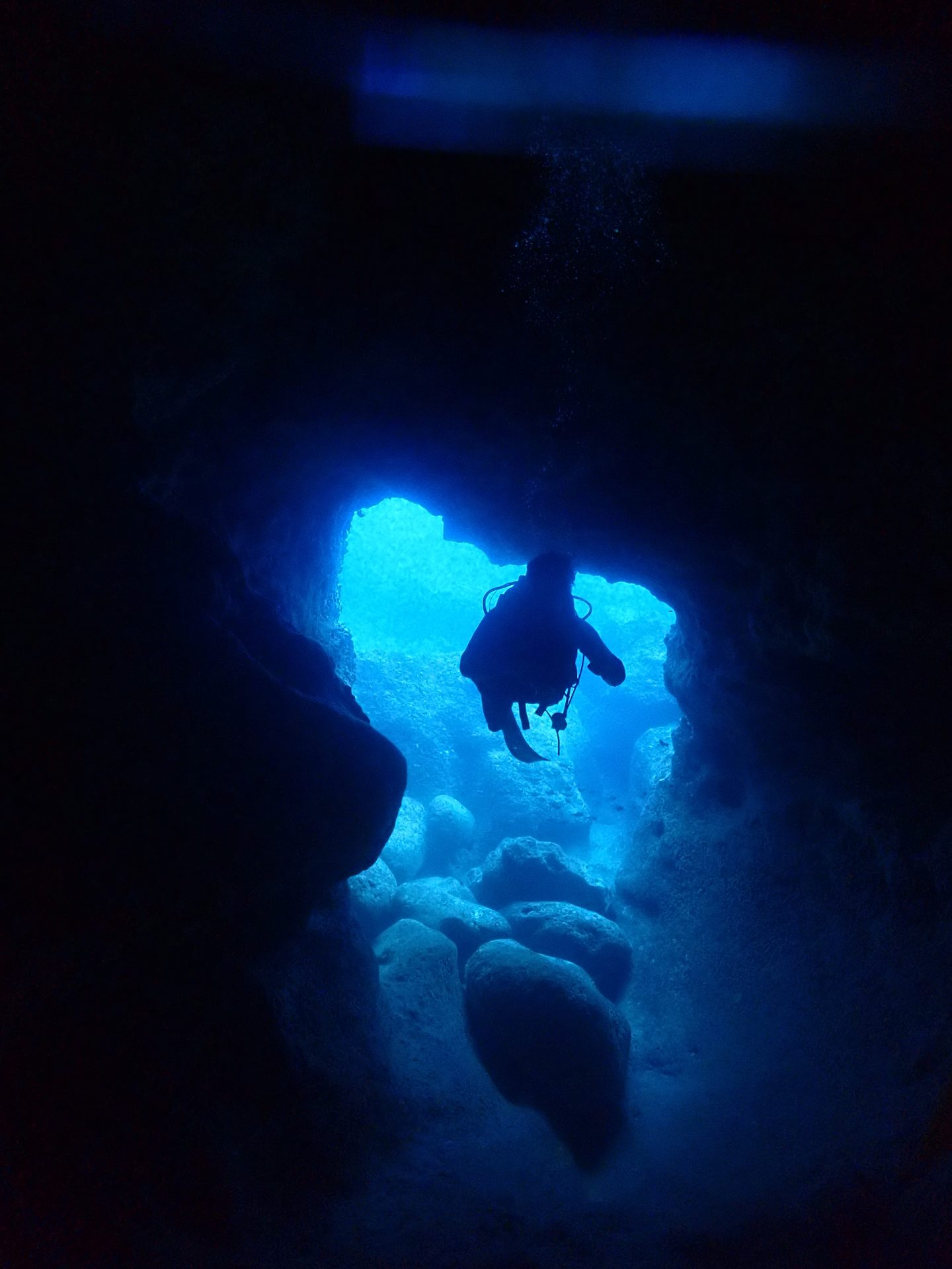 この洞窟はエアドームになっていて外の波の影響を受け