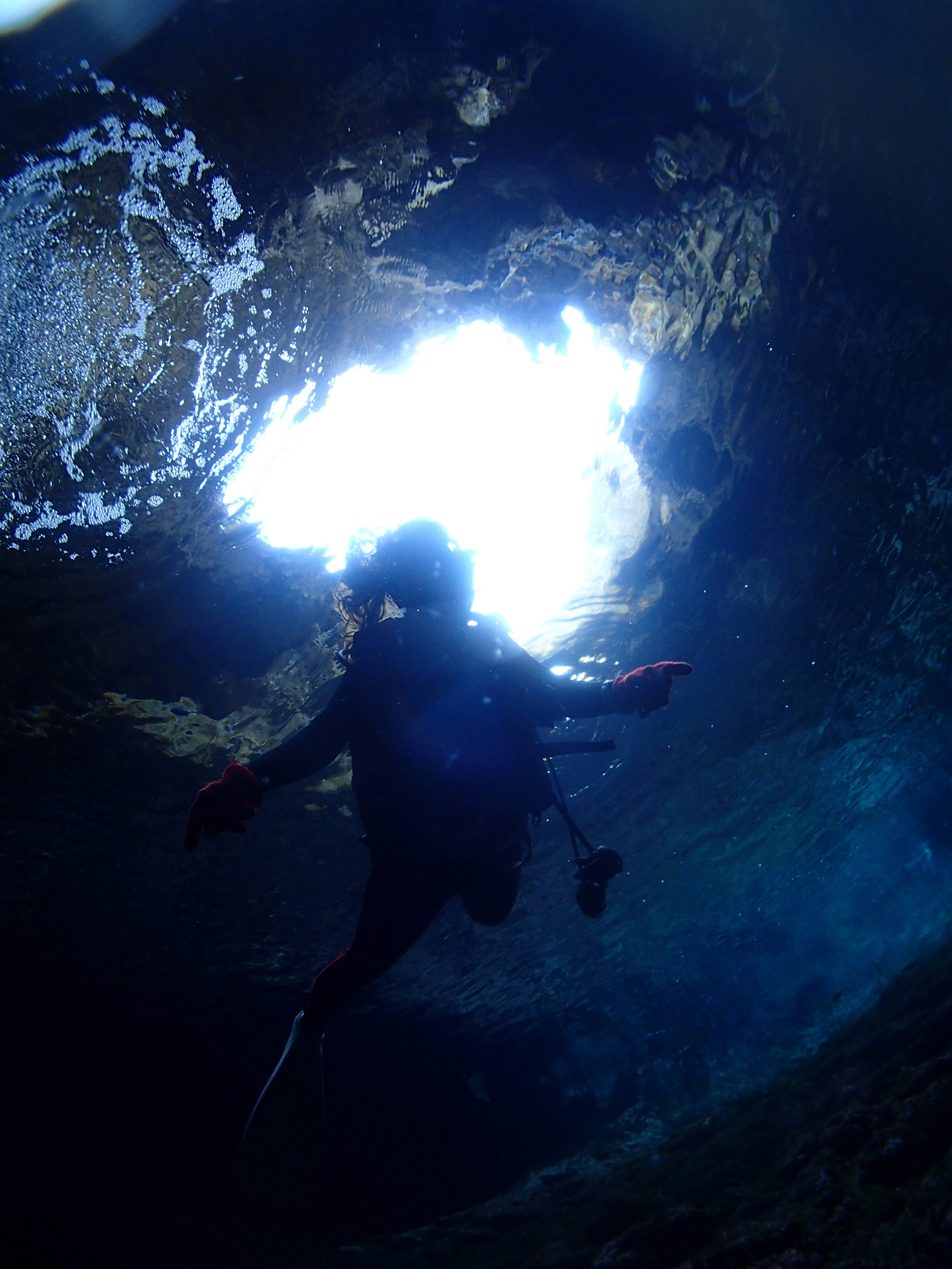 短い洞窟を抜けて池に浮上すると、
