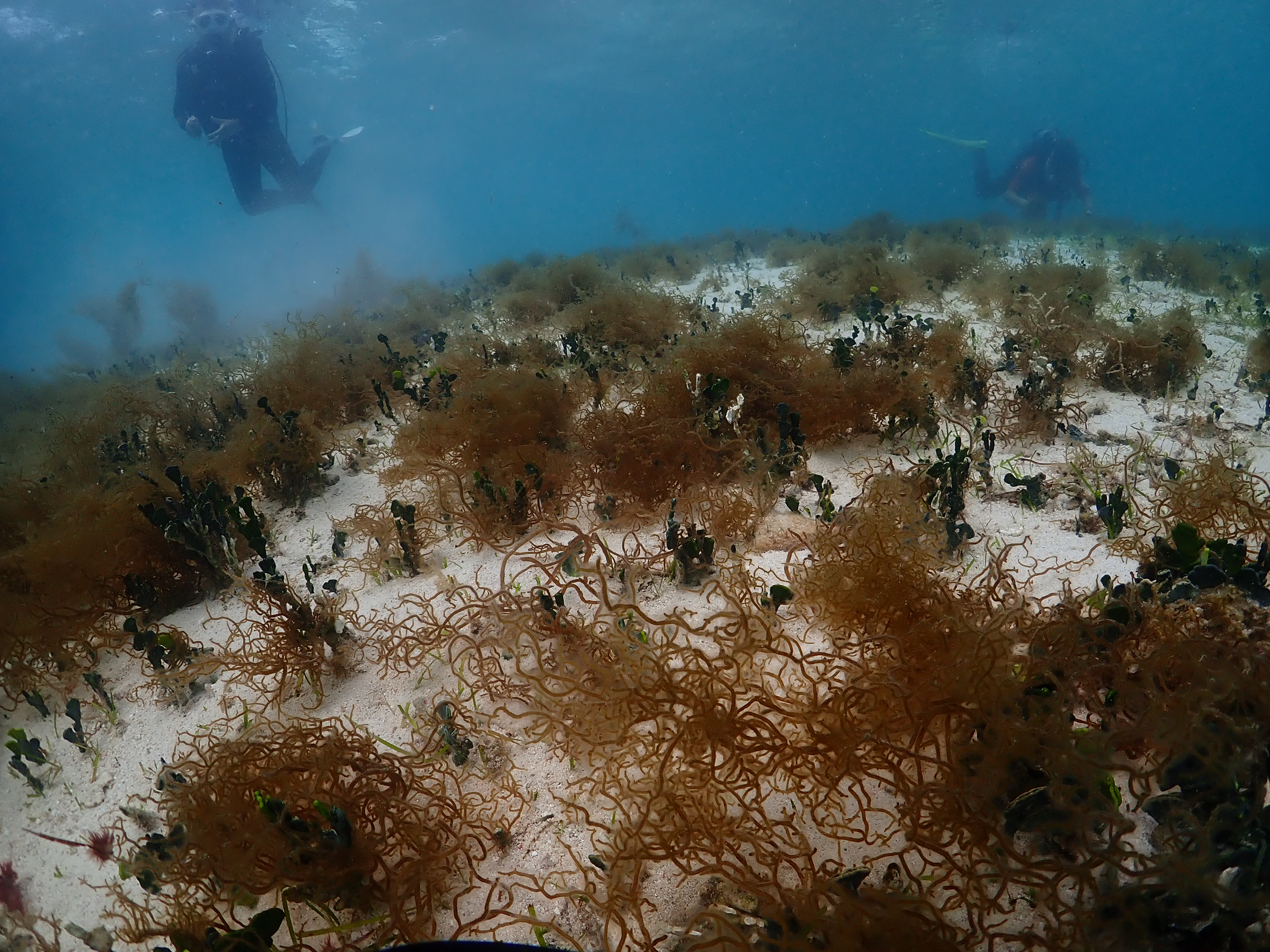 今日もビーチならモズクちょうだいと言う事で僕は天然のモズクと採りに(漁業権はあります)