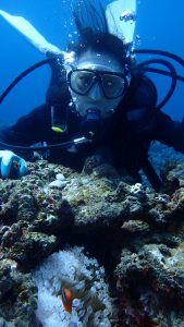 初めてとは思えない位の落ち着きで楽しくクマノミと一緒に![]()