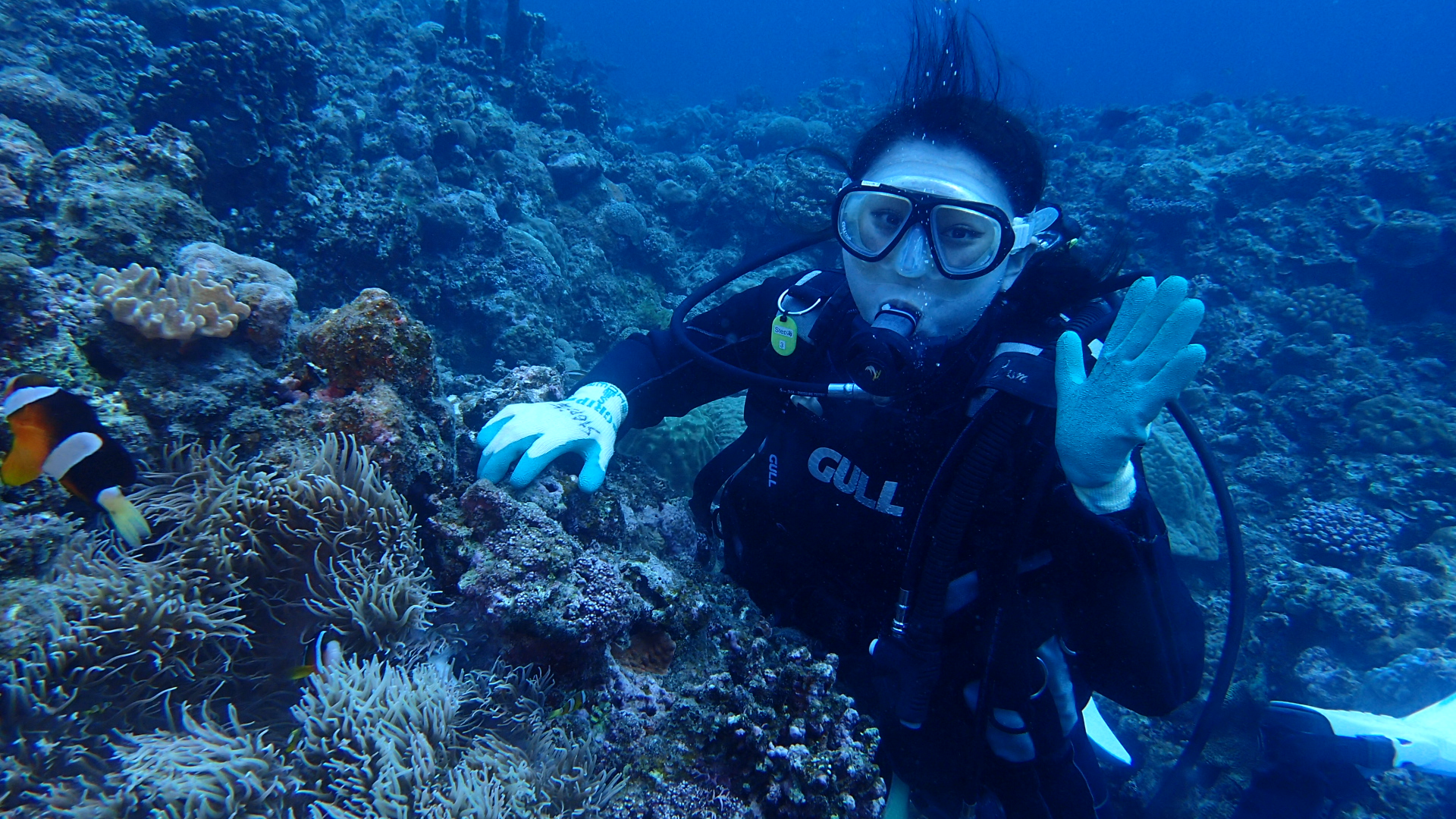 初めてとは思えない位の落ち着きで楽しくクマノミと一緒に![]()