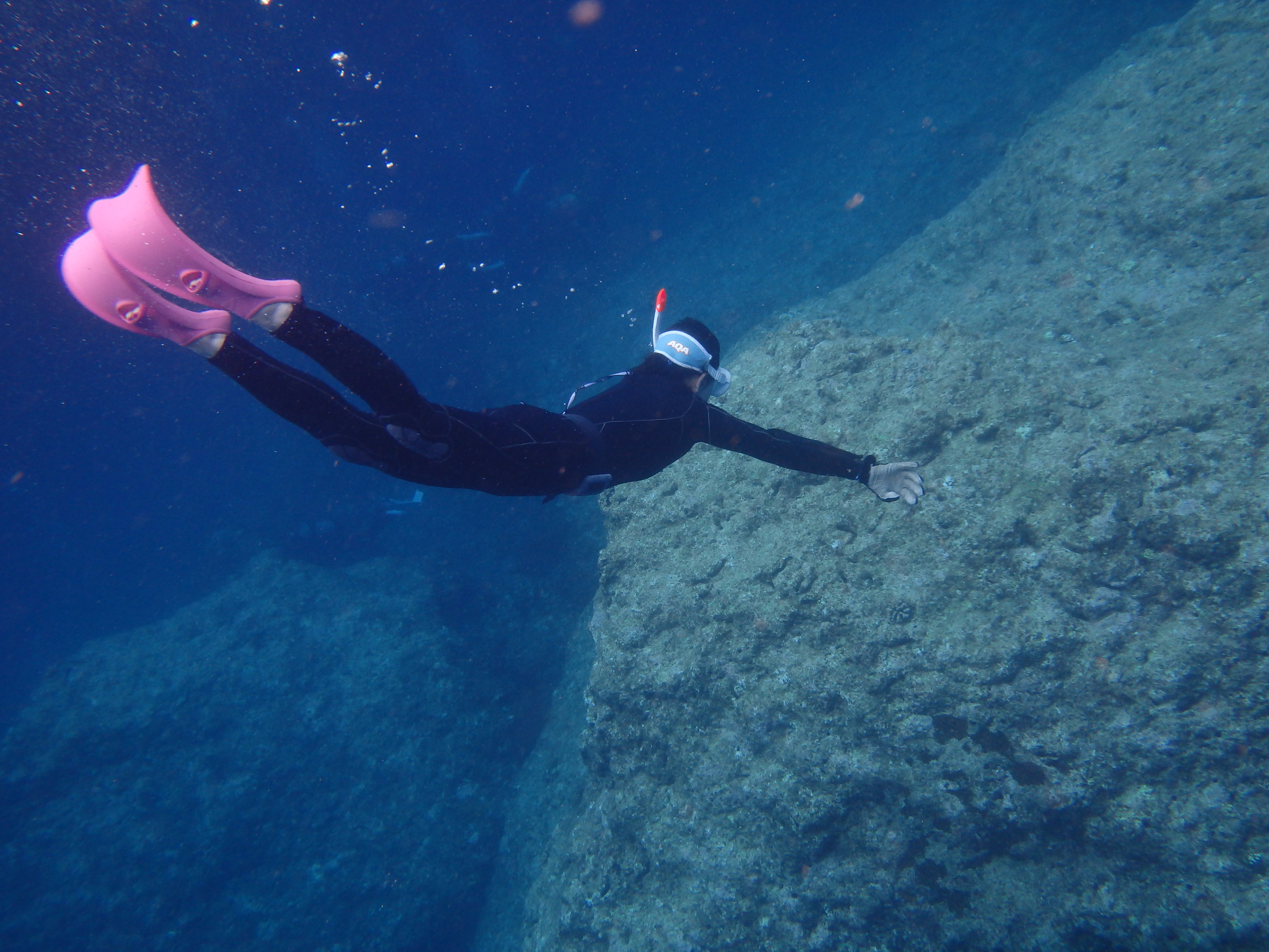 耳抜きできる方なので、ウエイトを付けて素潜り練習をしたみたいですよ![]()