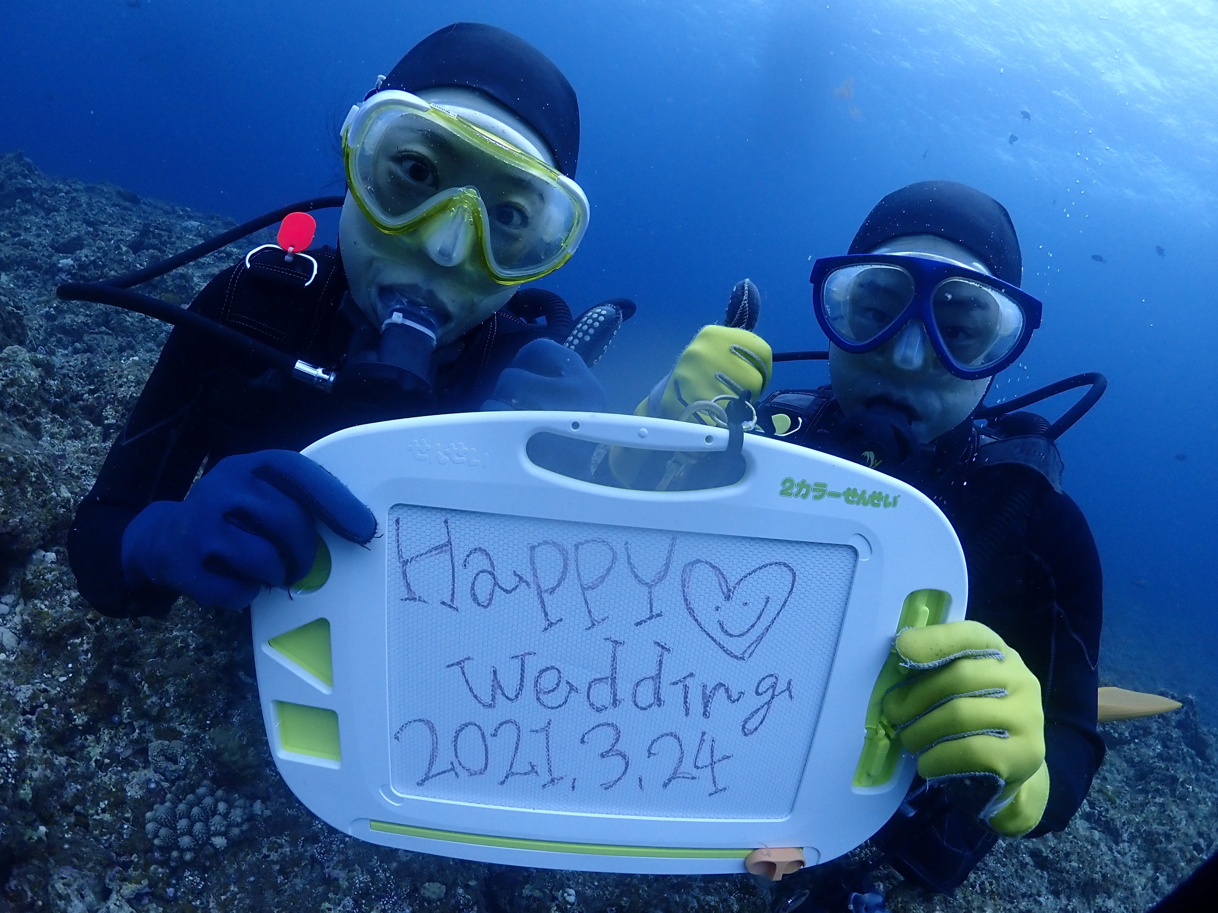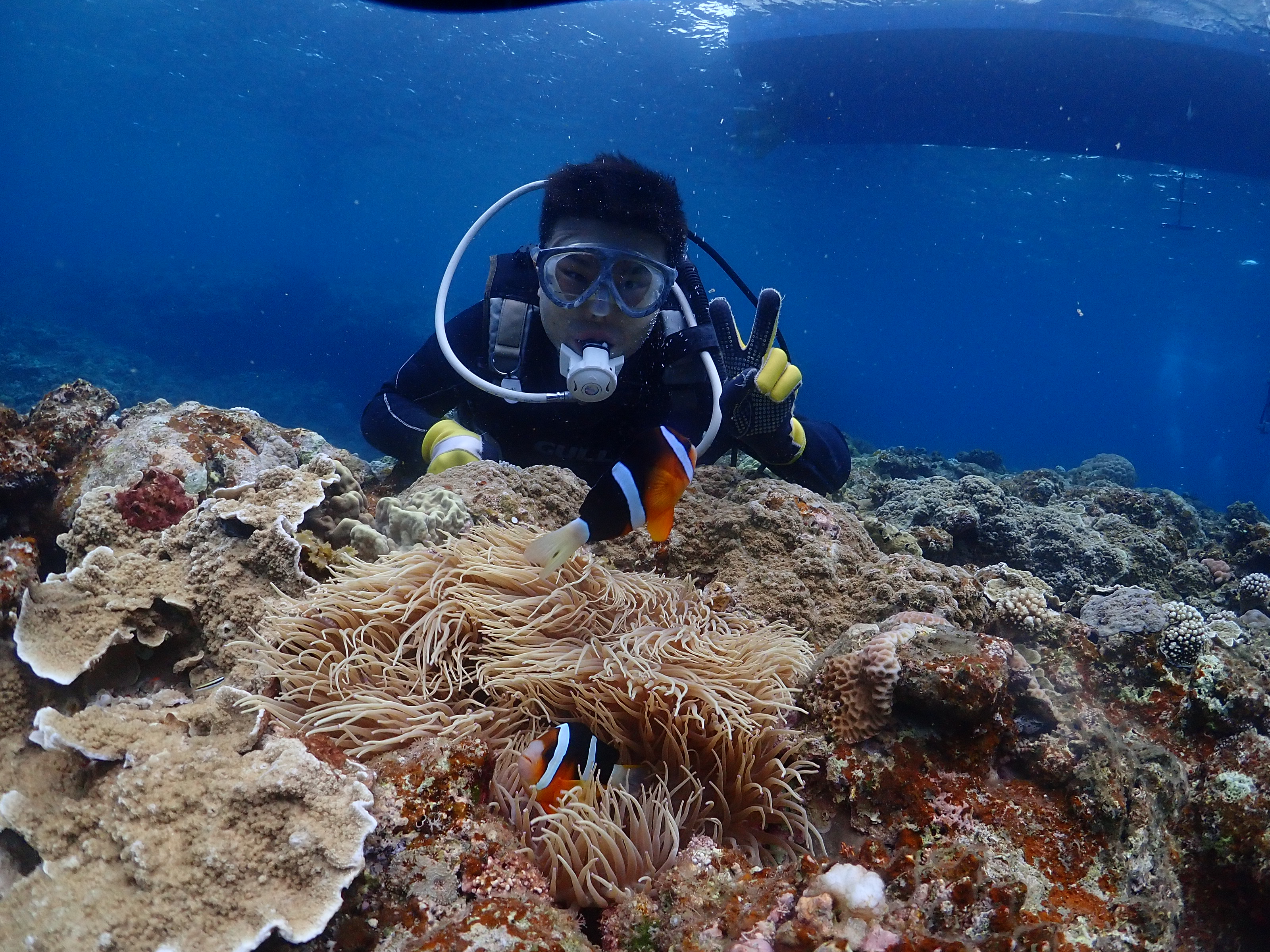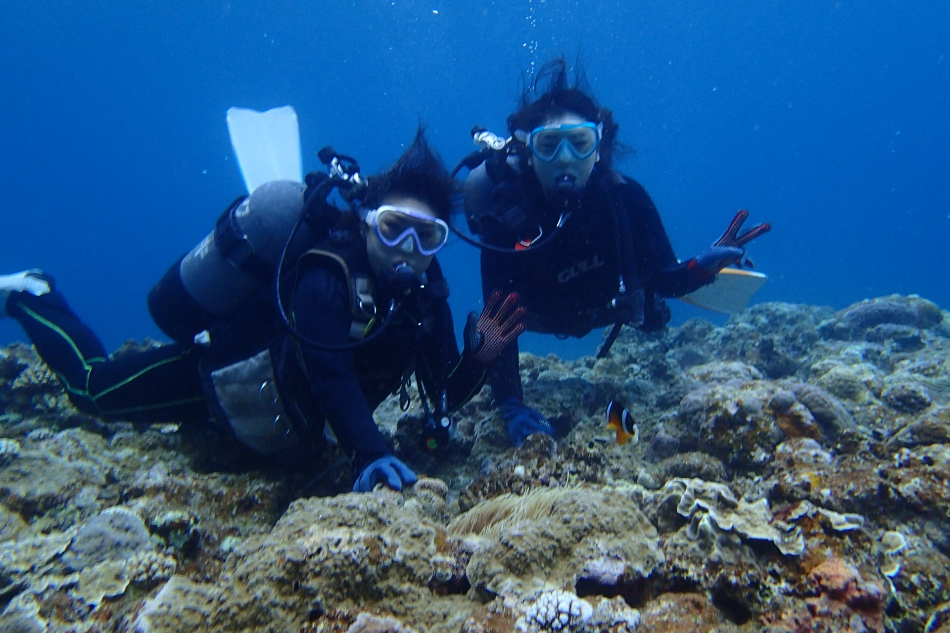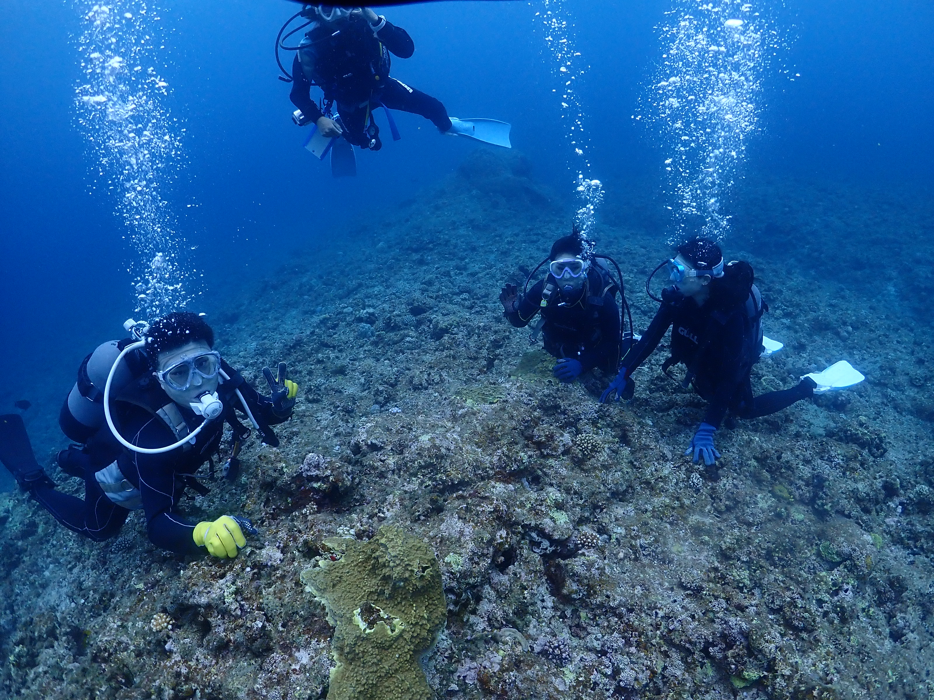 体験ダイビング2チーム水中で集合して一緒に記念撮影です![]()