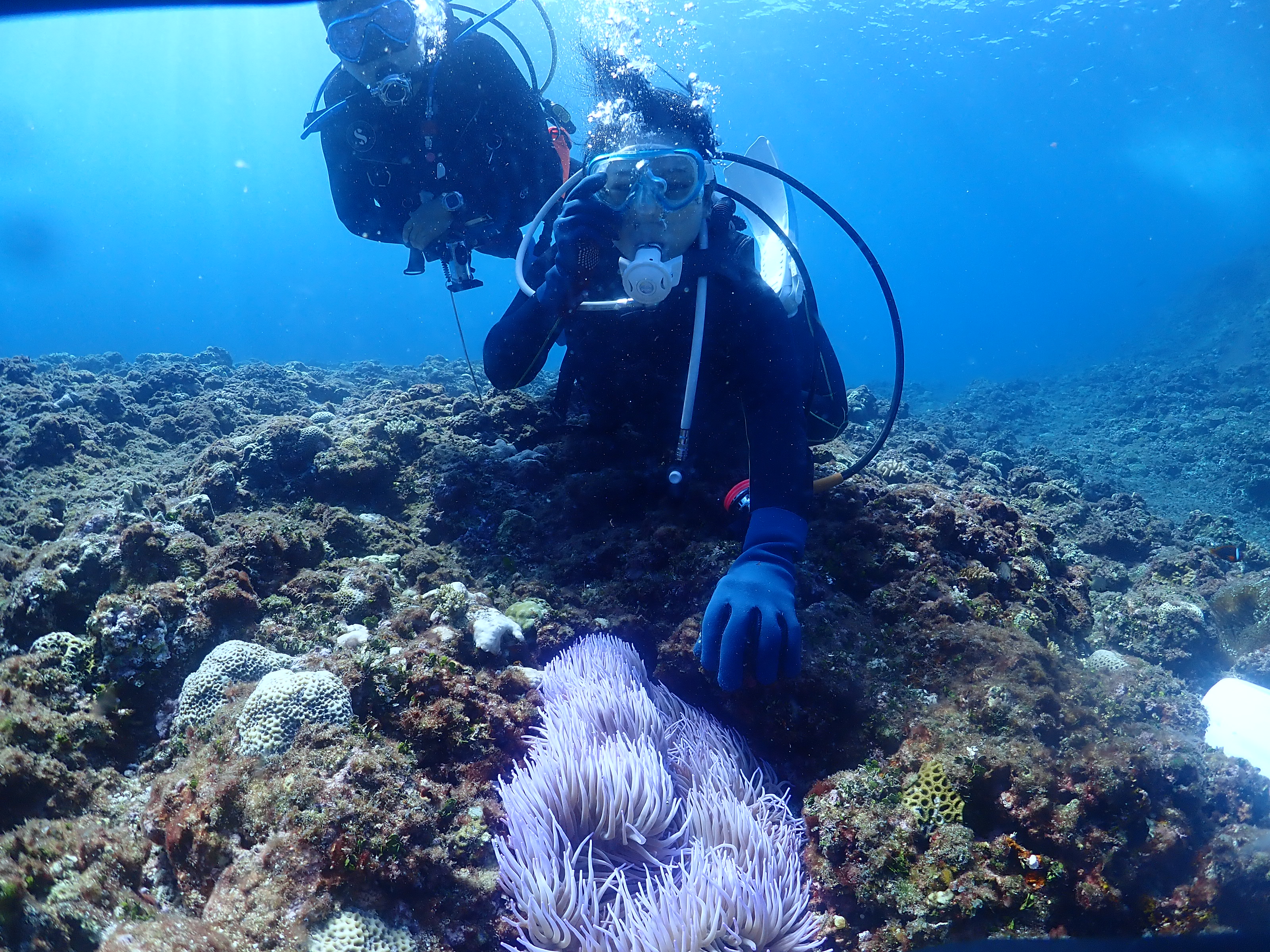 今回初めての体験ダイビングにご参加です。 呼吸の練習は手こずってましたが