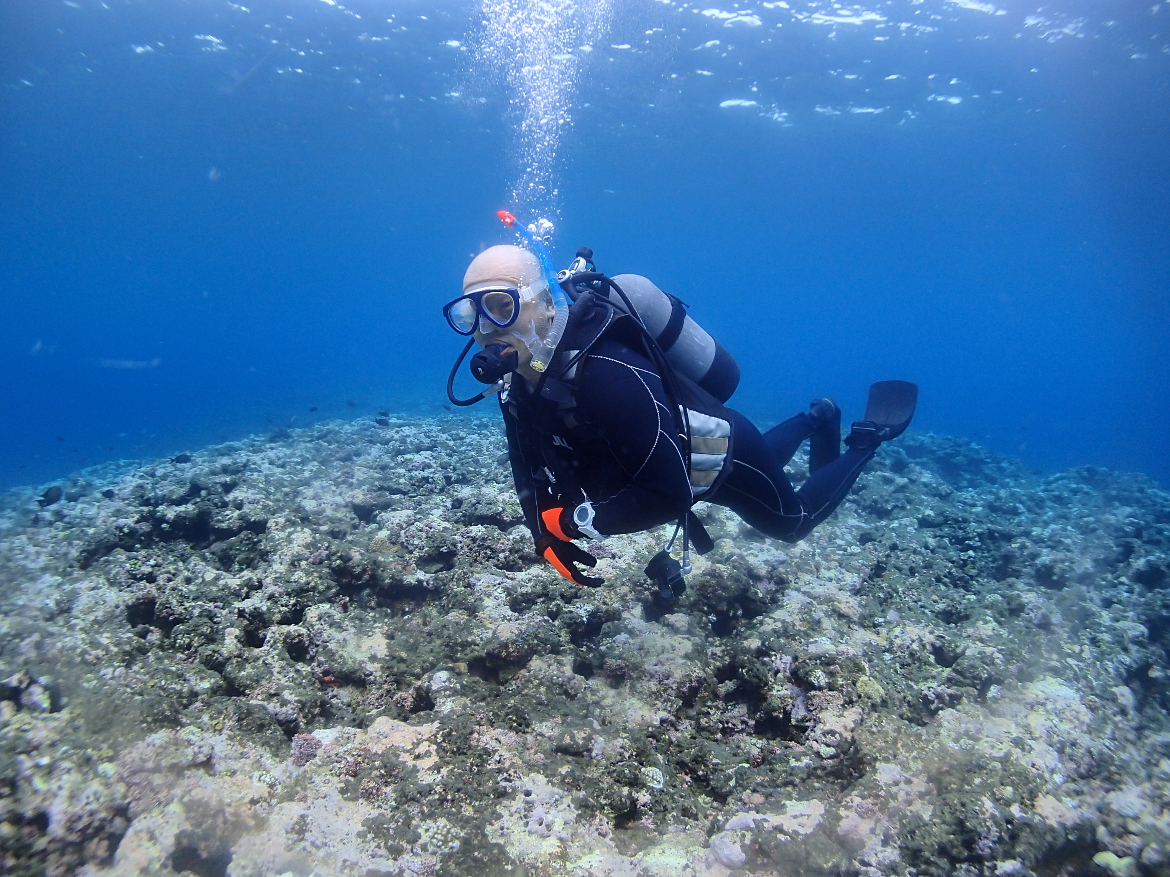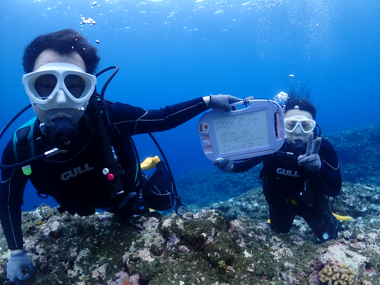 ずっと素潜りをされていて、体験ダイビングをした時に水中で呼吸をし続けられることに感動して、ライセンスを取得したいと思ったそうです![]()