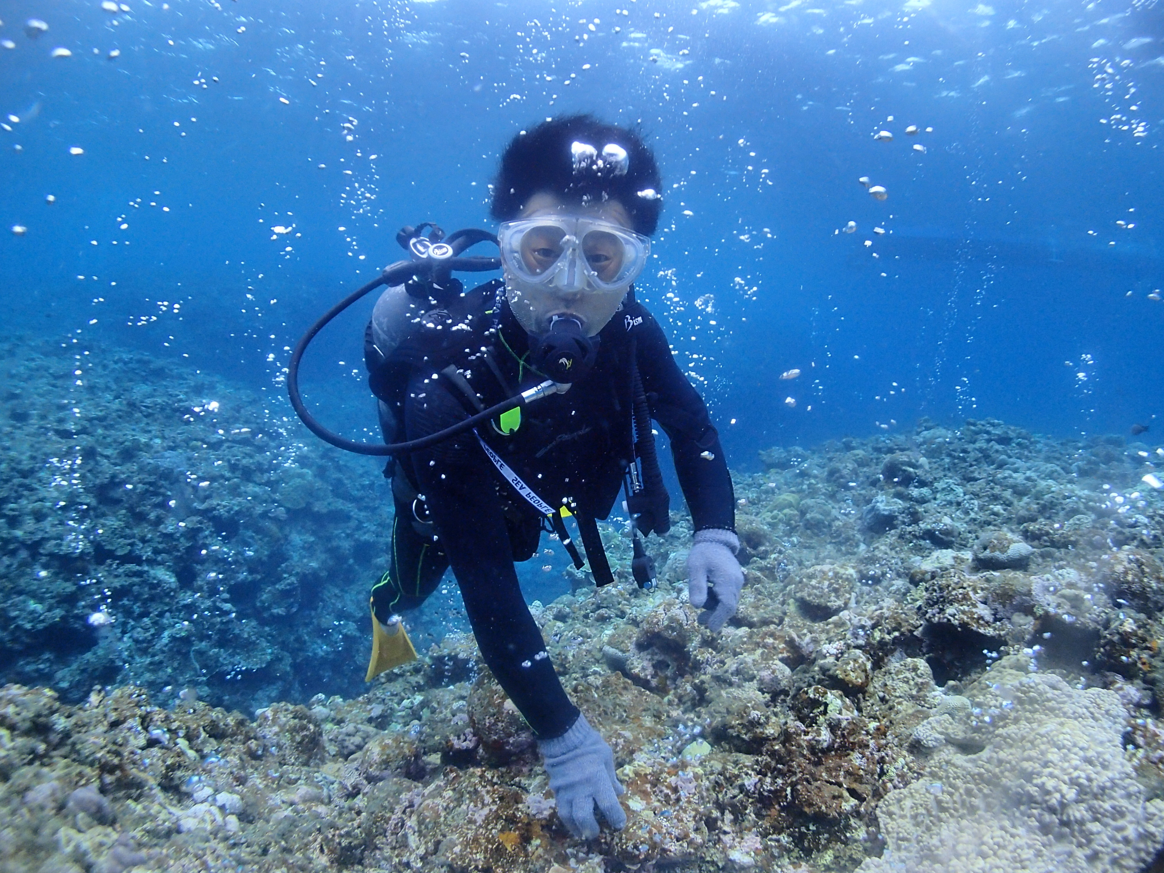 中性浮力の練習中、ふわふわ思い通りに動けるように頑張ります!
