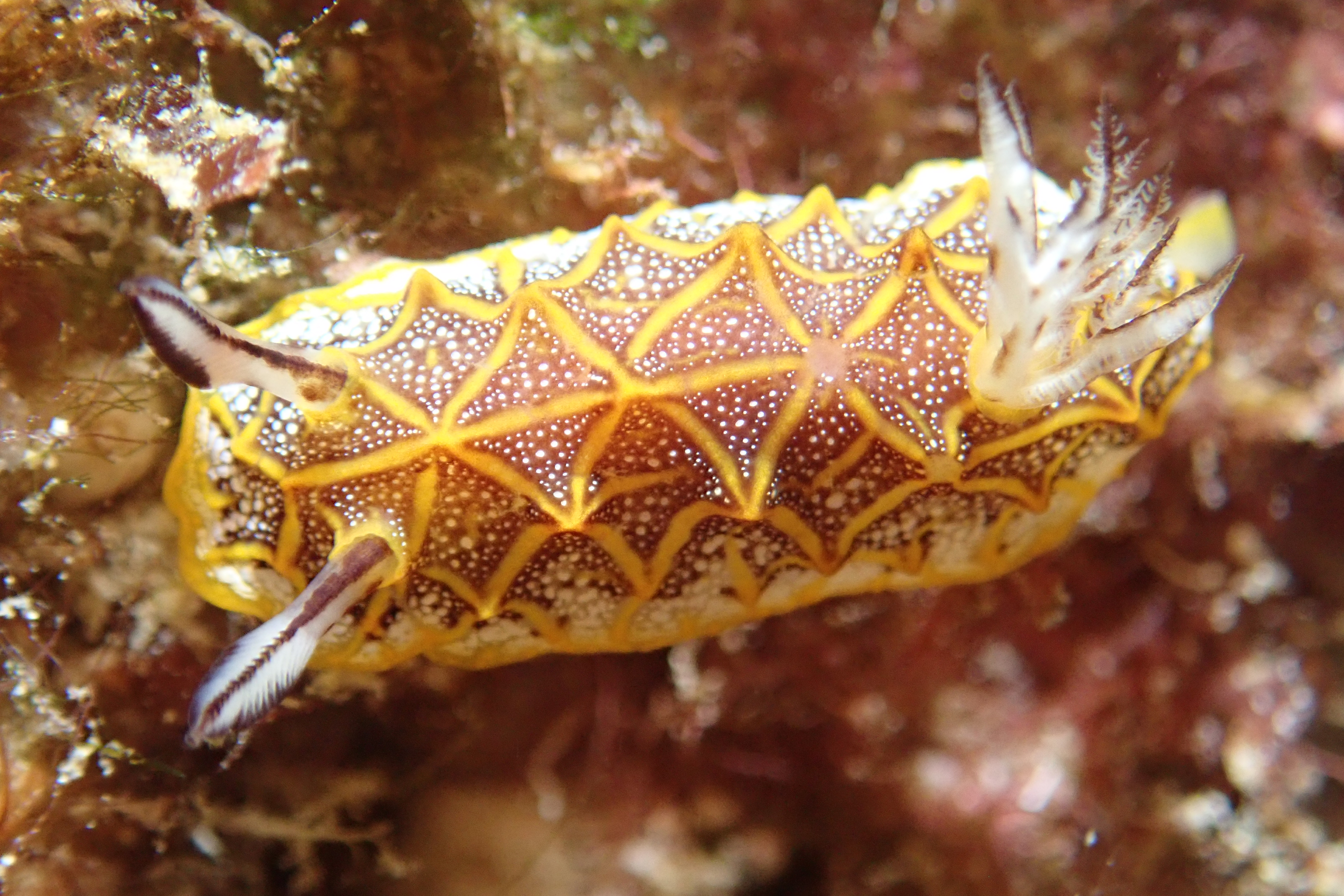 お散歩中のモザイクウミウシ と とても小さなオランウータンクラブ
