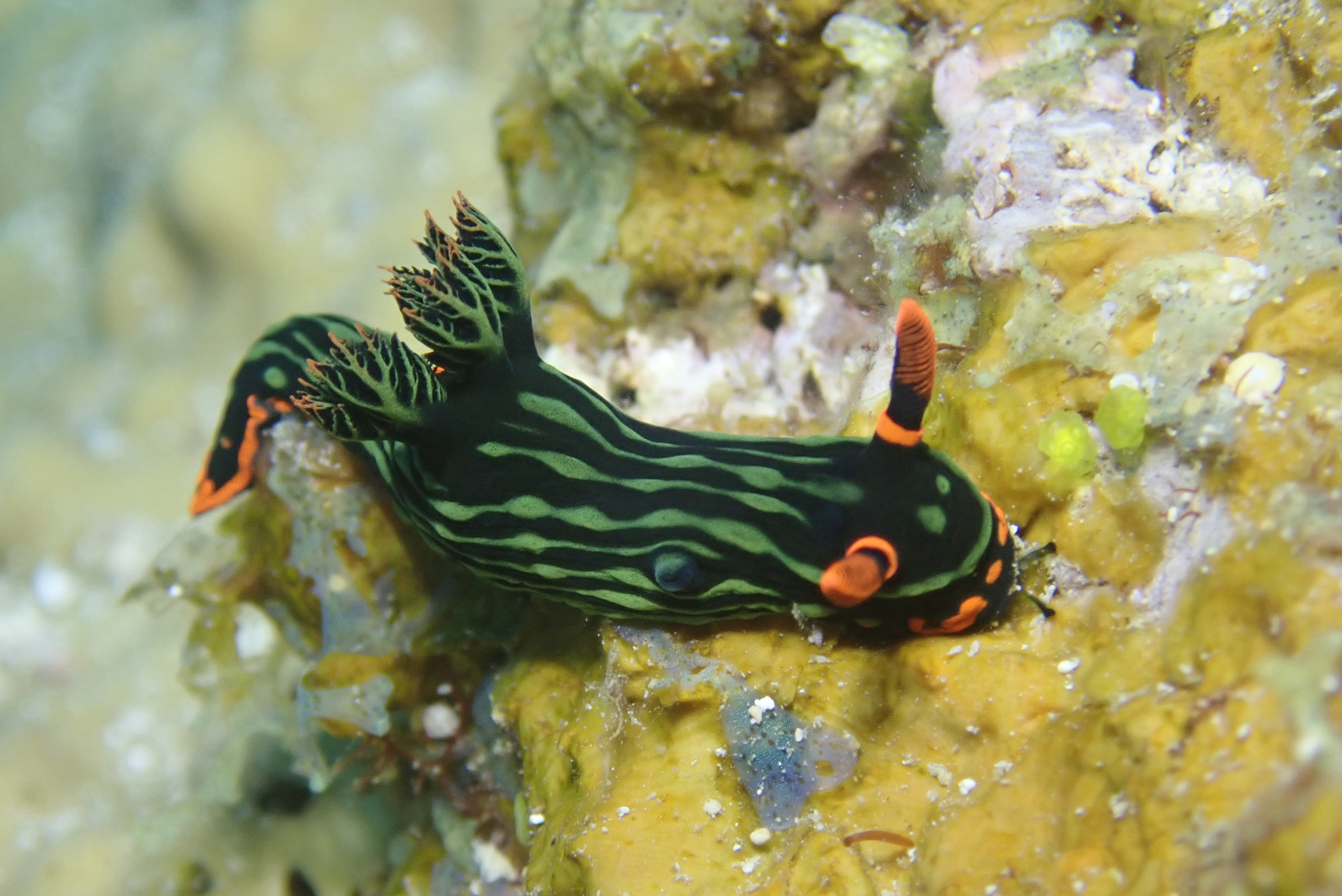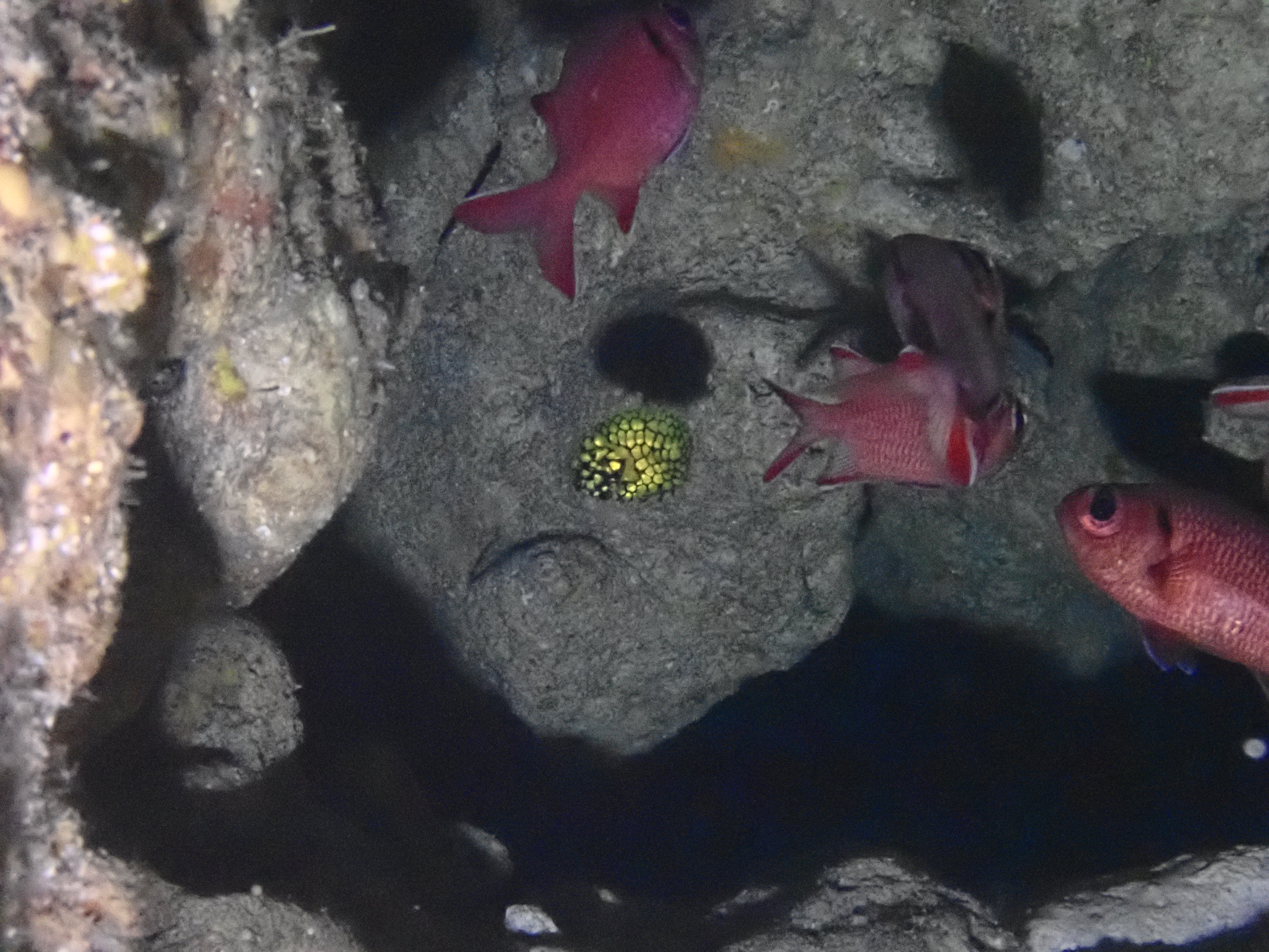 アカフチリュウグウウミウシ と 定住??マツカサウオ君