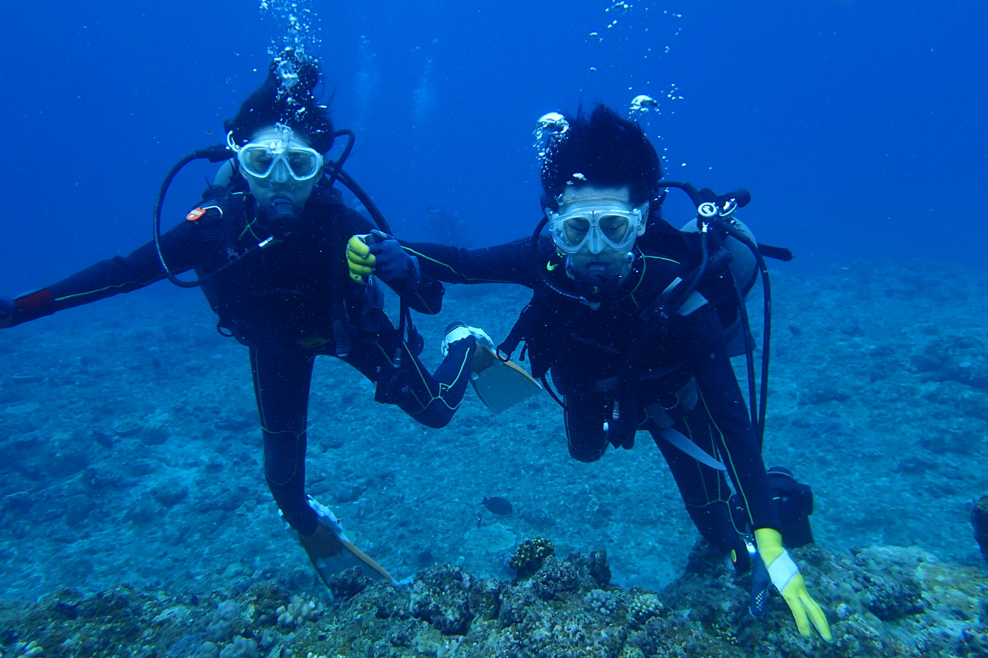 こちらのカップルさんは何度も体験ダイビングの経験があるので余裕です。