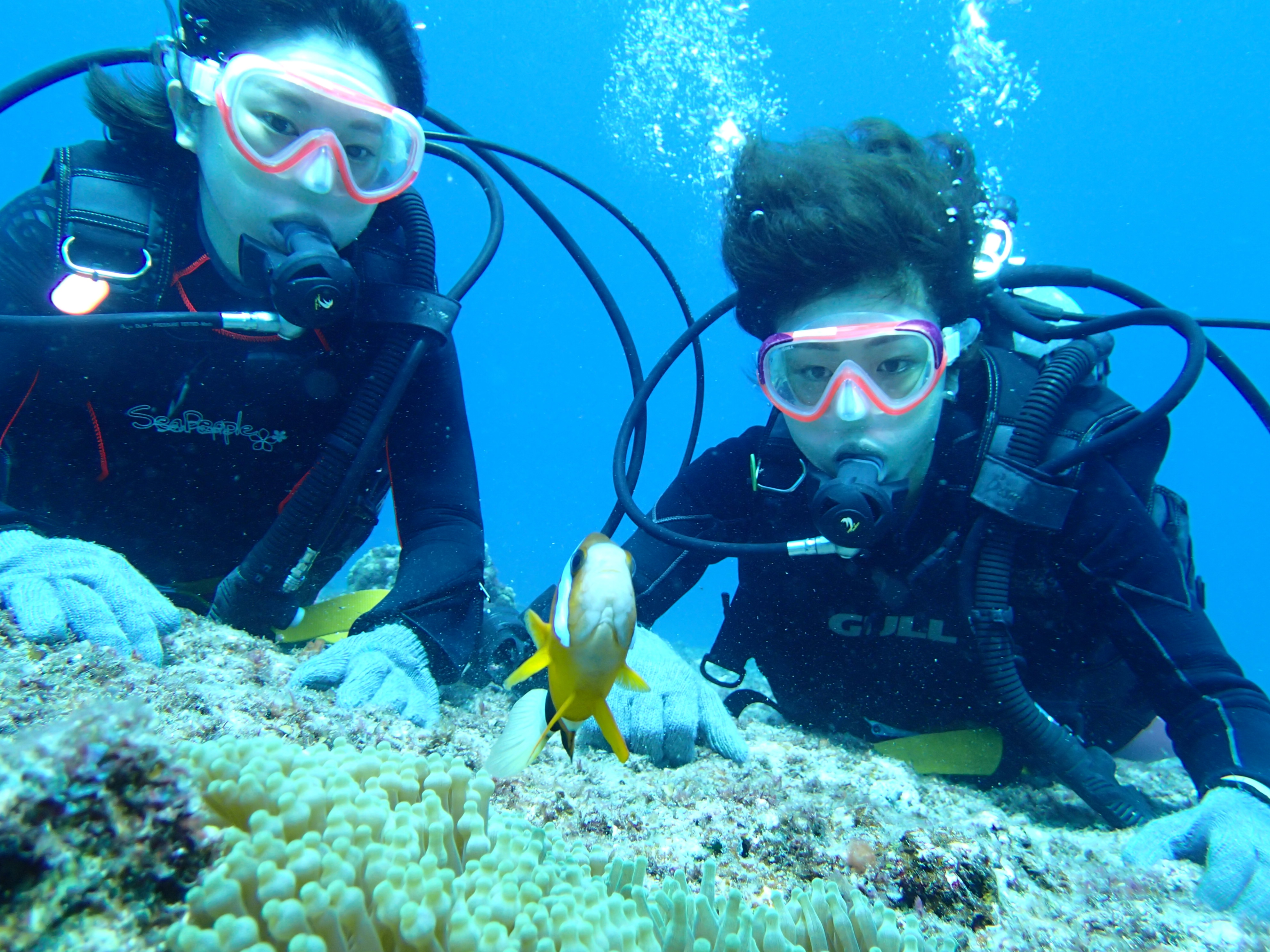 今回初めての体験ダイビングにご参加のお二人水中ではとても楽しんでいるご様子で