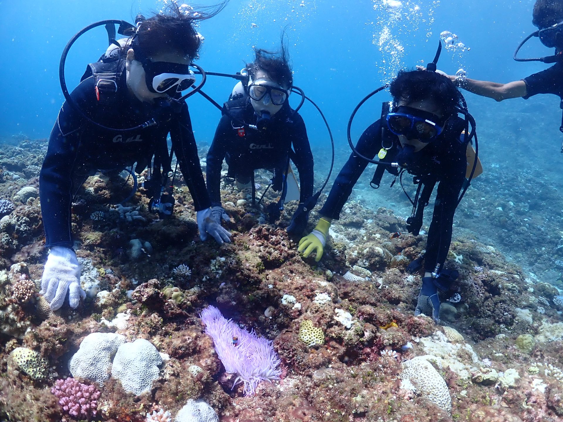 クマノミなどお魚を観察しつつ、初めての体験ダイビングを堪能してもらえたかな?![]()